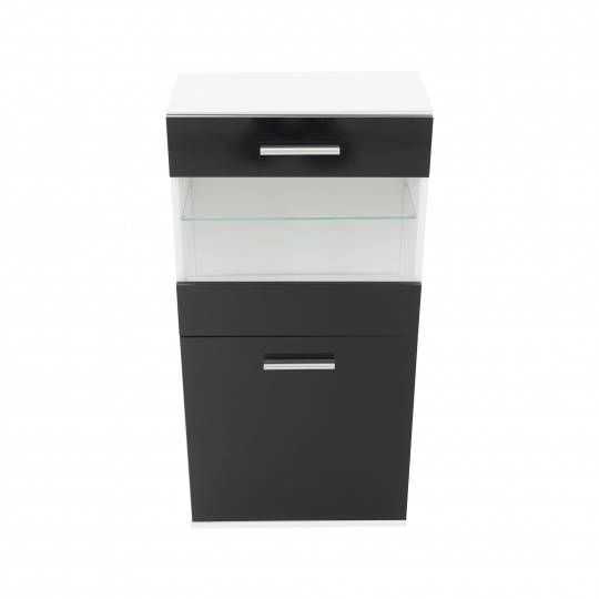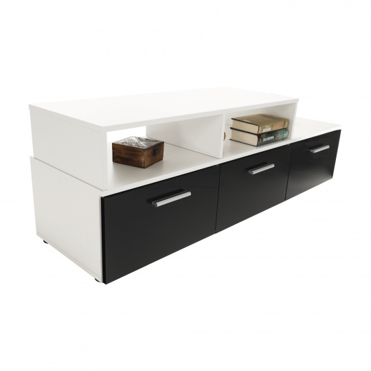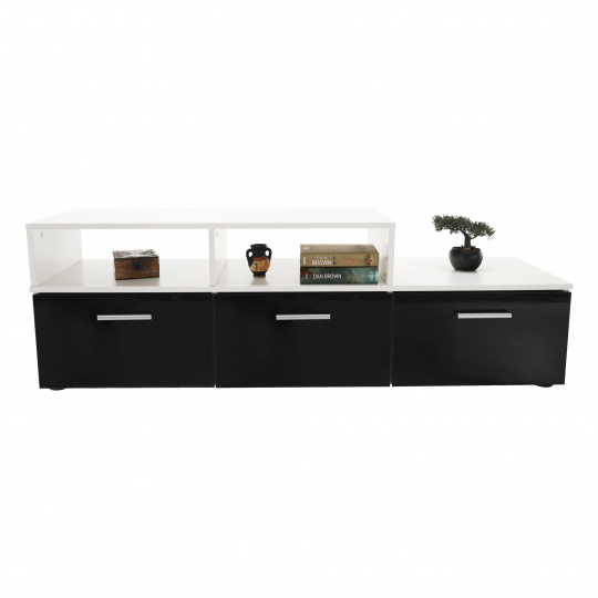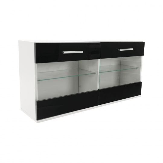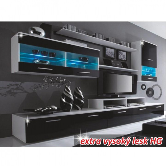 Obývací stěna, bílá / černý extra vysoký lesk HG, LEO