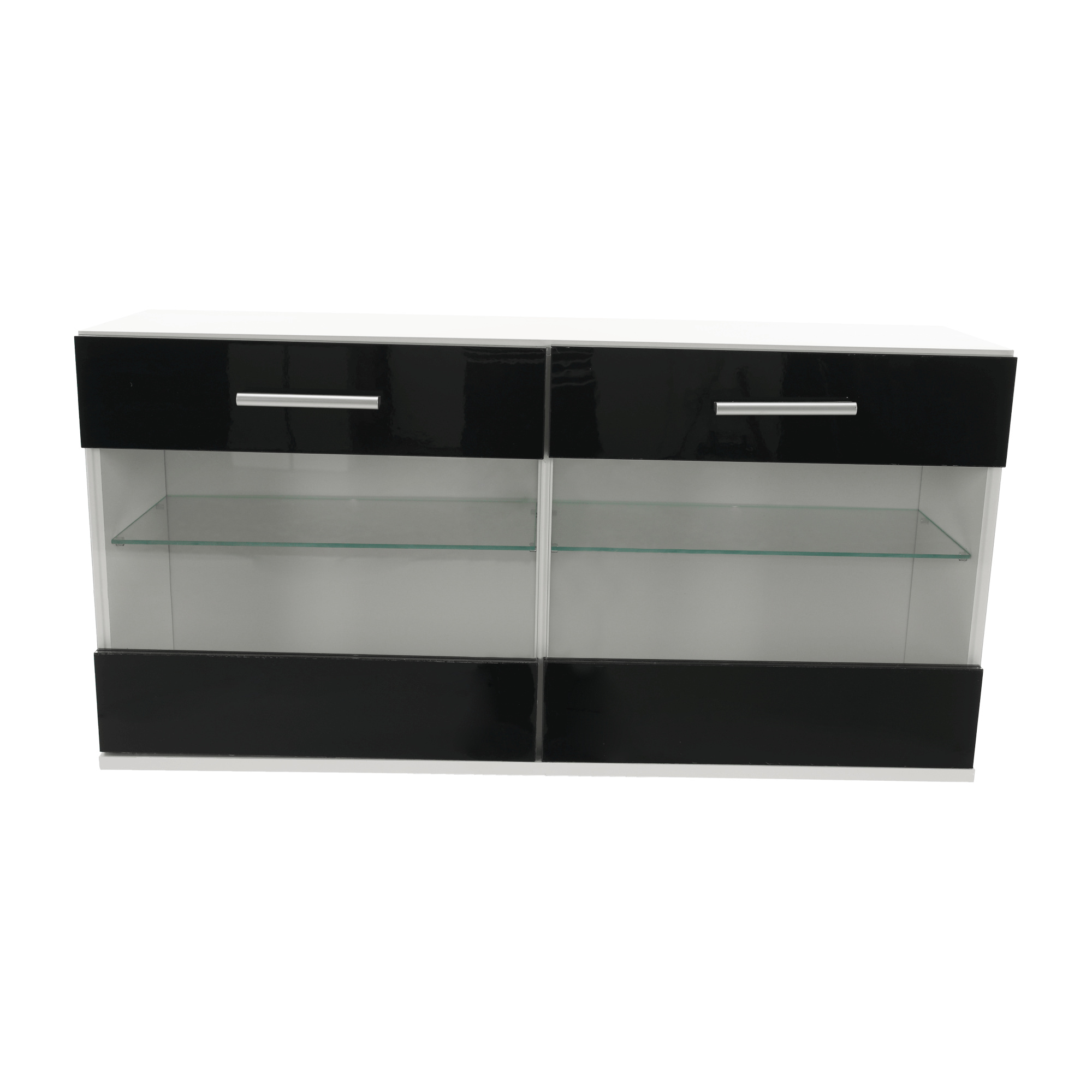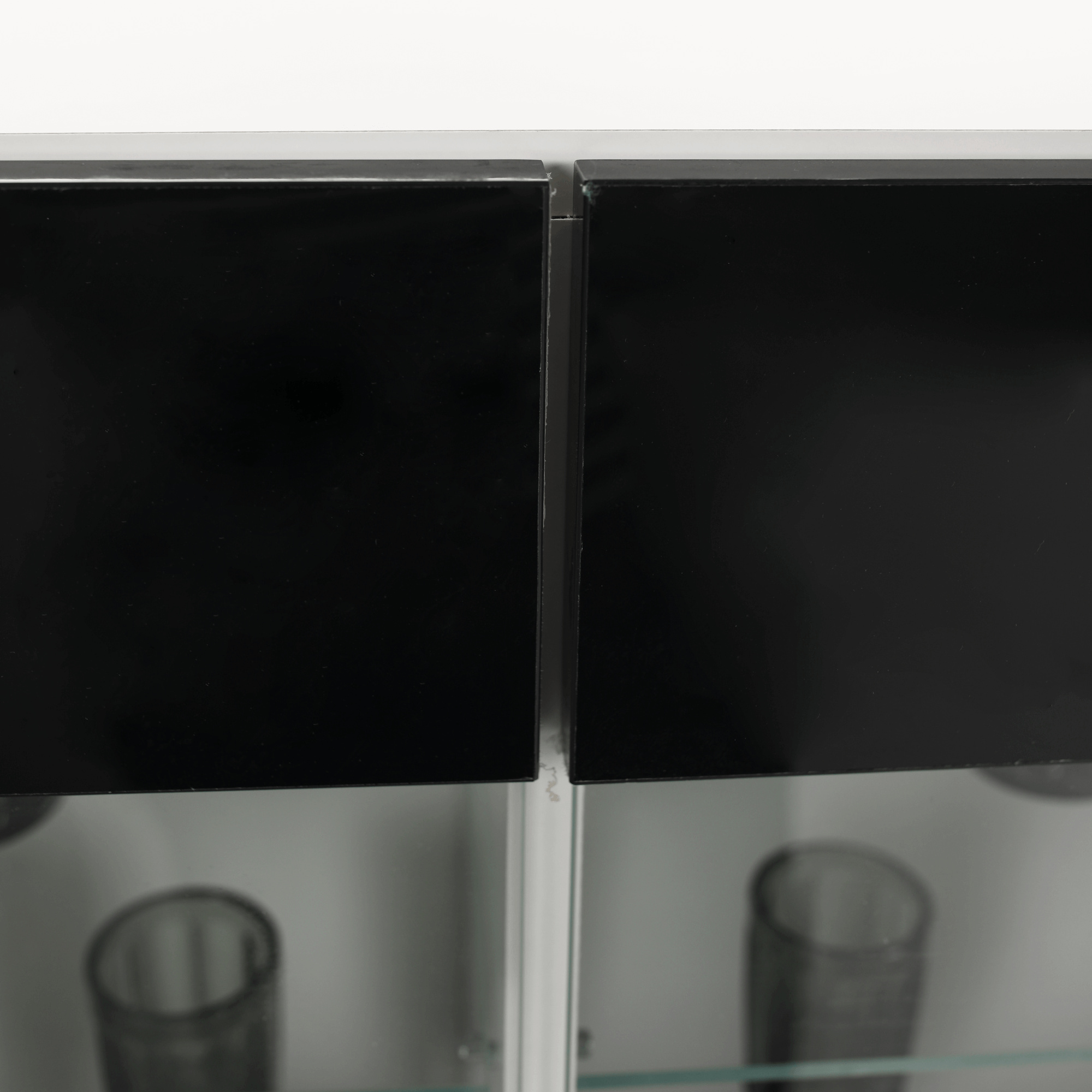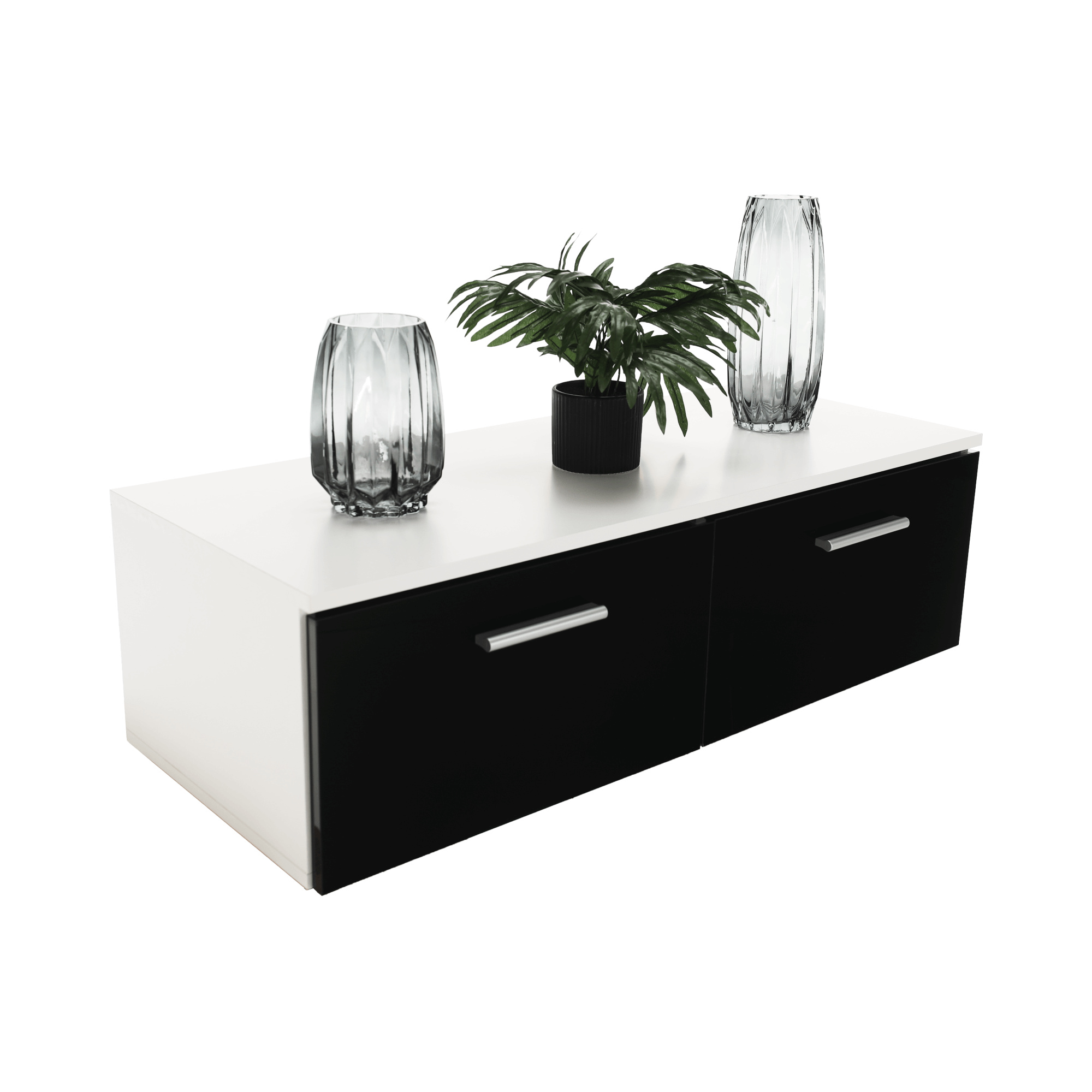 Obývací stěna s LED osvětlením LEO Materiál: DTD laminovaná Barva: bílá / černý extra vysoký lesk Rozměry (ŠxHxV): 250x42x180 cm Tloušťka materiálu vrchní desky spodní skříňky: 22 mm Tloušťka materiálu korpus: 16 mm Dodávané v demontu.