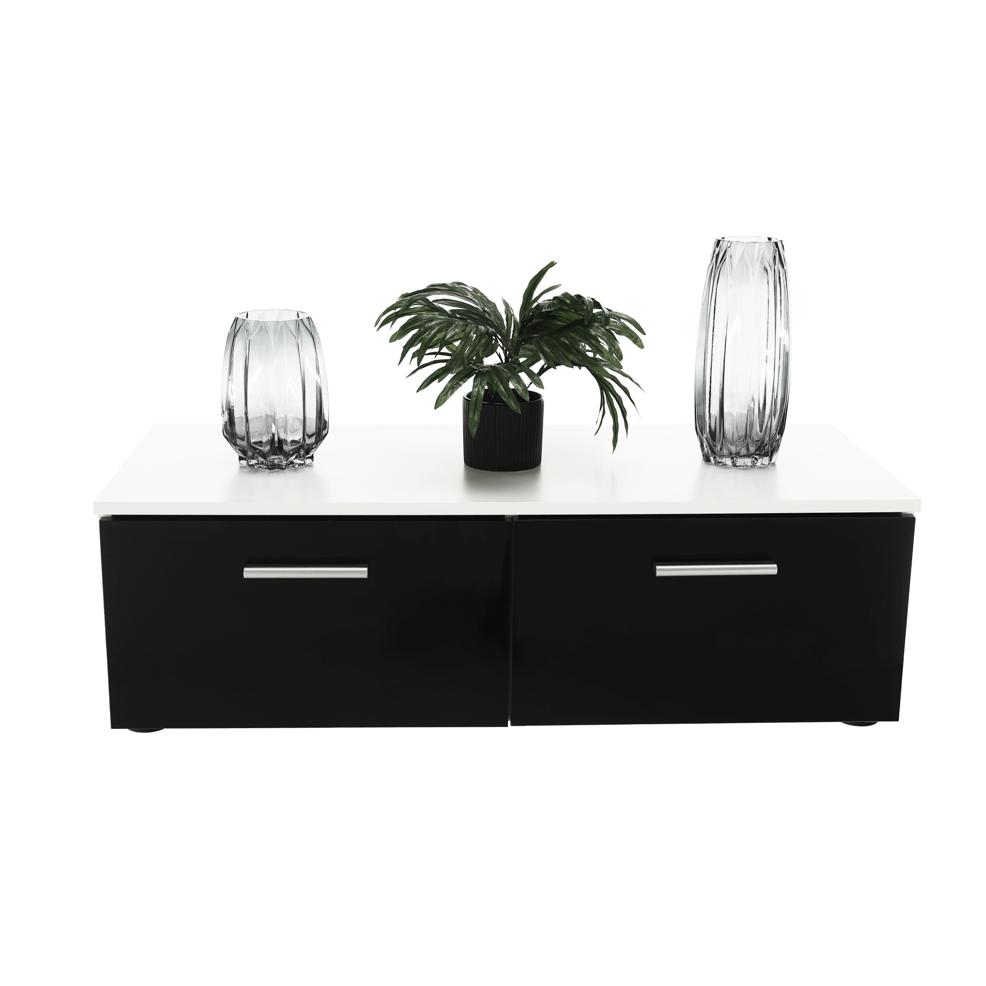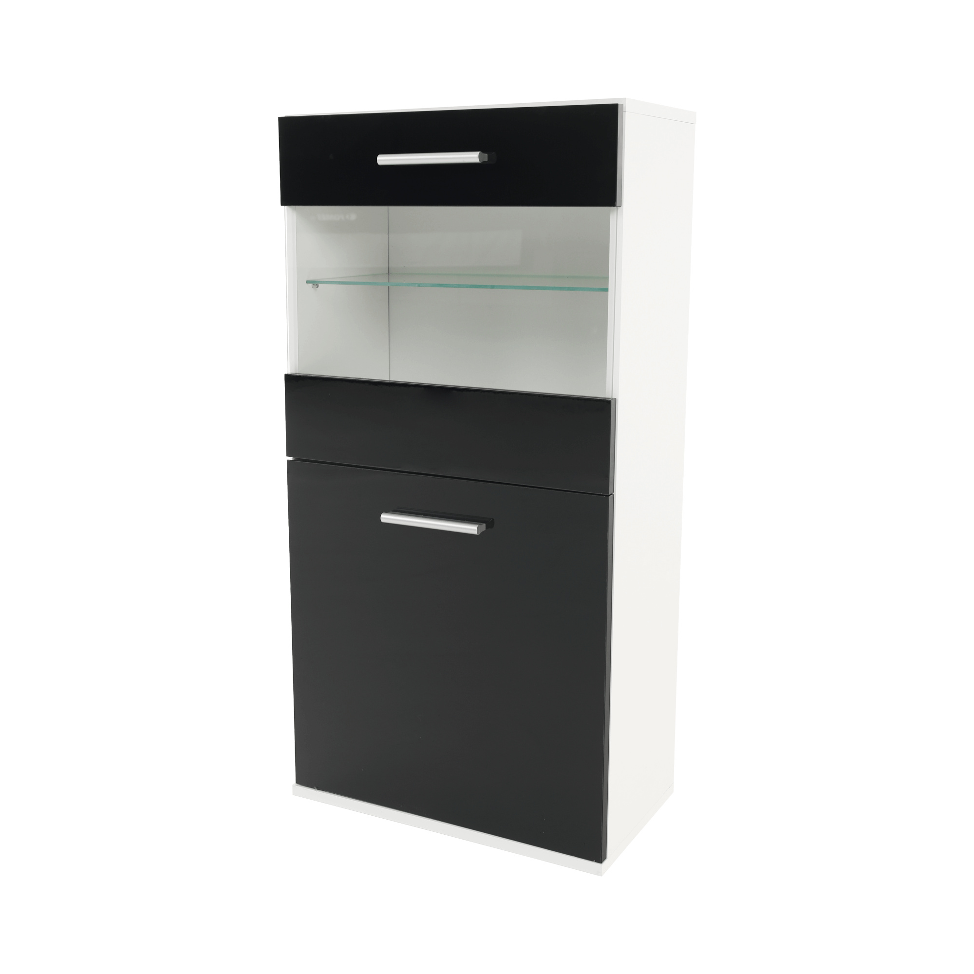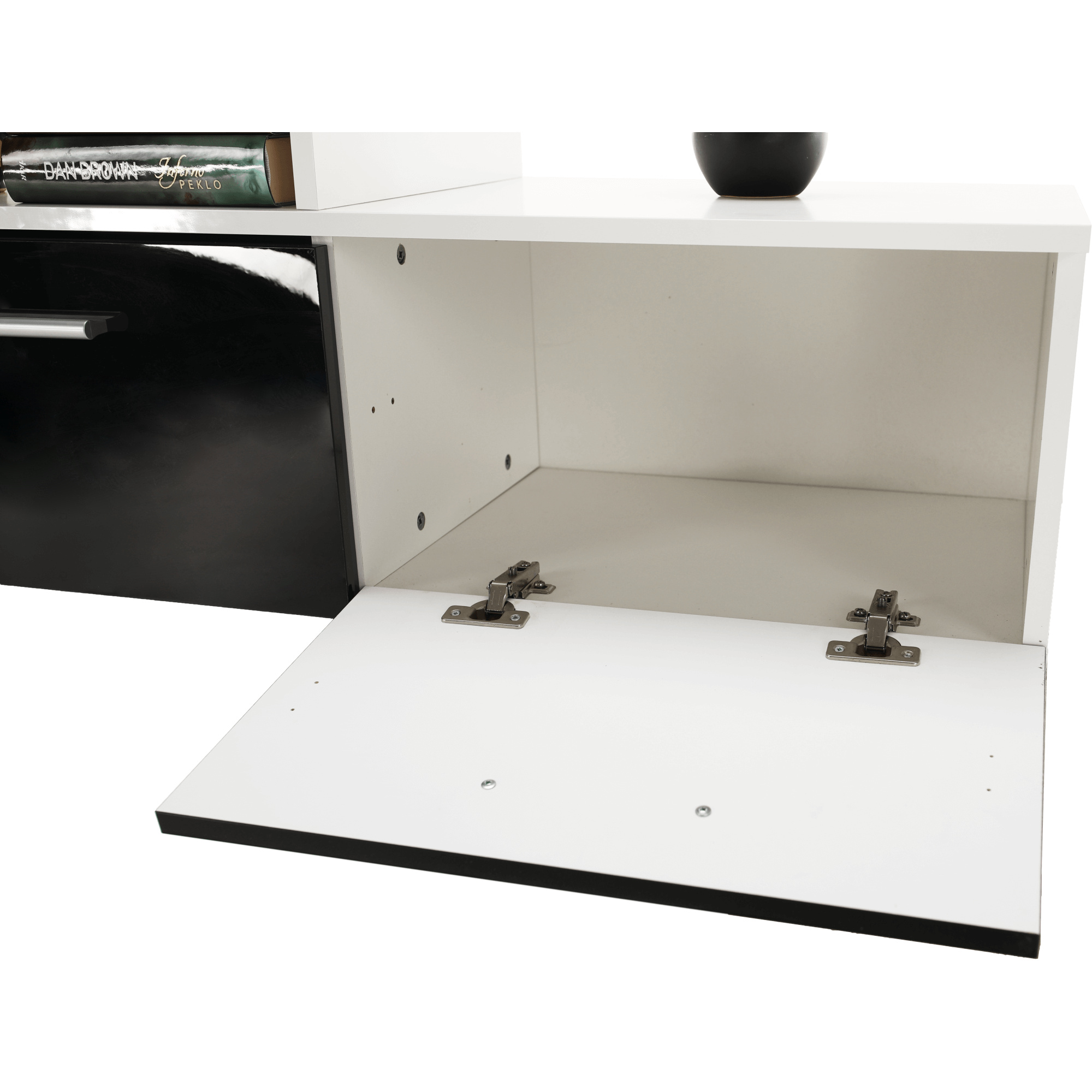 Obývací stěna, bílá / černý extra vysoký lesk HG, LEO