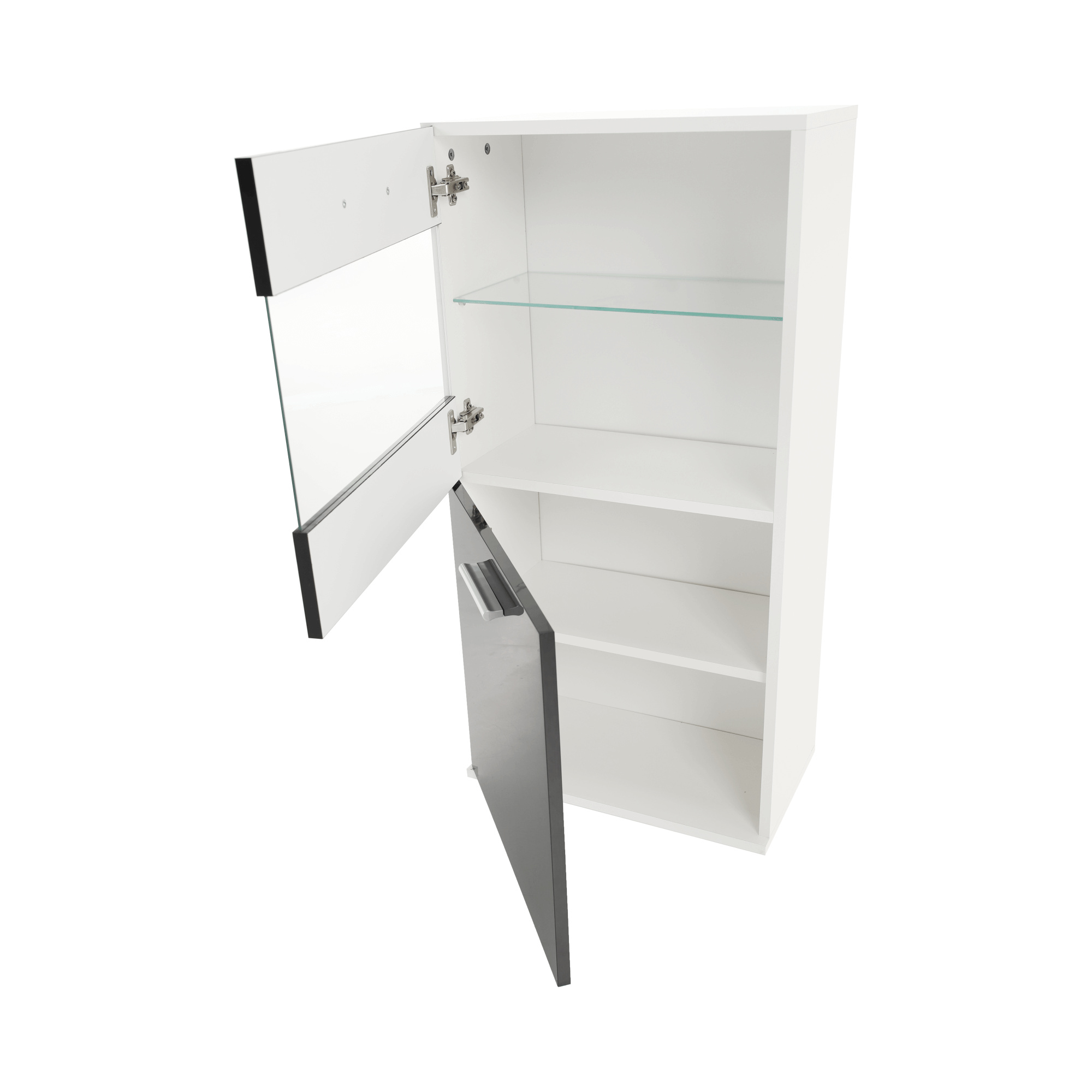 Materiál: DTD Barva: šedá / bílá Rozměry (ŠxHxV): 59x21,6x150 cm Tloušťka materiálu: 15 mm poutavý design Netradičně rozvržené police Víceúčelový Dodáván v demontu Hmotnost: 21.5kg