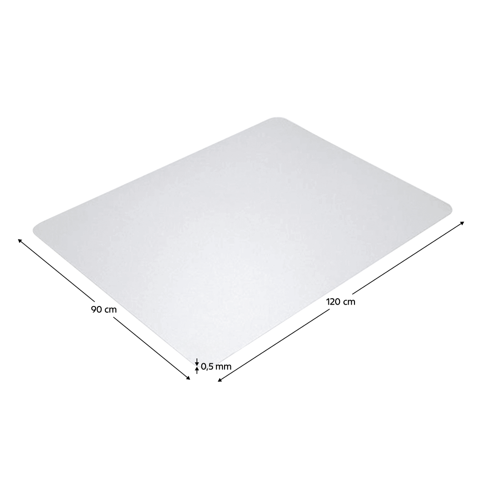 Materiál: polypropylen Barva: transparentní Rozměry (ŠxH): 120x90 cm Tloušťka materiálu: 0,5 mm Odolnější než PVC Vhodná na dřevo, laminát, mramor, korek, kámen, beton Není vhodná na koberce Není vhodná na podlahy s podlahovým vytápěním zaoblené rohy Chrání před oděrkami a škrábanci Výborně splyne s prostředím Snadná údržba Pod křesla, židle, jiný nábytek Do vstupních hal, výtahů Vhodná i jako podložka na cvičení Jako podložka pod dětskou židli Jako ochrana podlahy před domácími zvířaty Dodávané v monte
