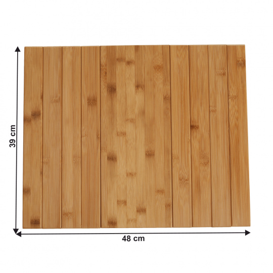 Materiál: lakovaný bambus Barva: přírodní Materiál spodní část: plsť Rozměry (ŠxHxV): 48x39x1 cm Na opěrky rukou na sedačce nebo křesle Lze položit i na taburet a jiný povrch Jednoduše se skládá a přemisťuje Dodávané v monte