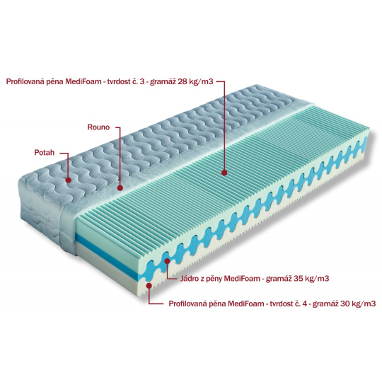 | výška včetně potahu | úplet, Aloe Vera | SilverGuard, Lyocell, Medicott, Levandule |