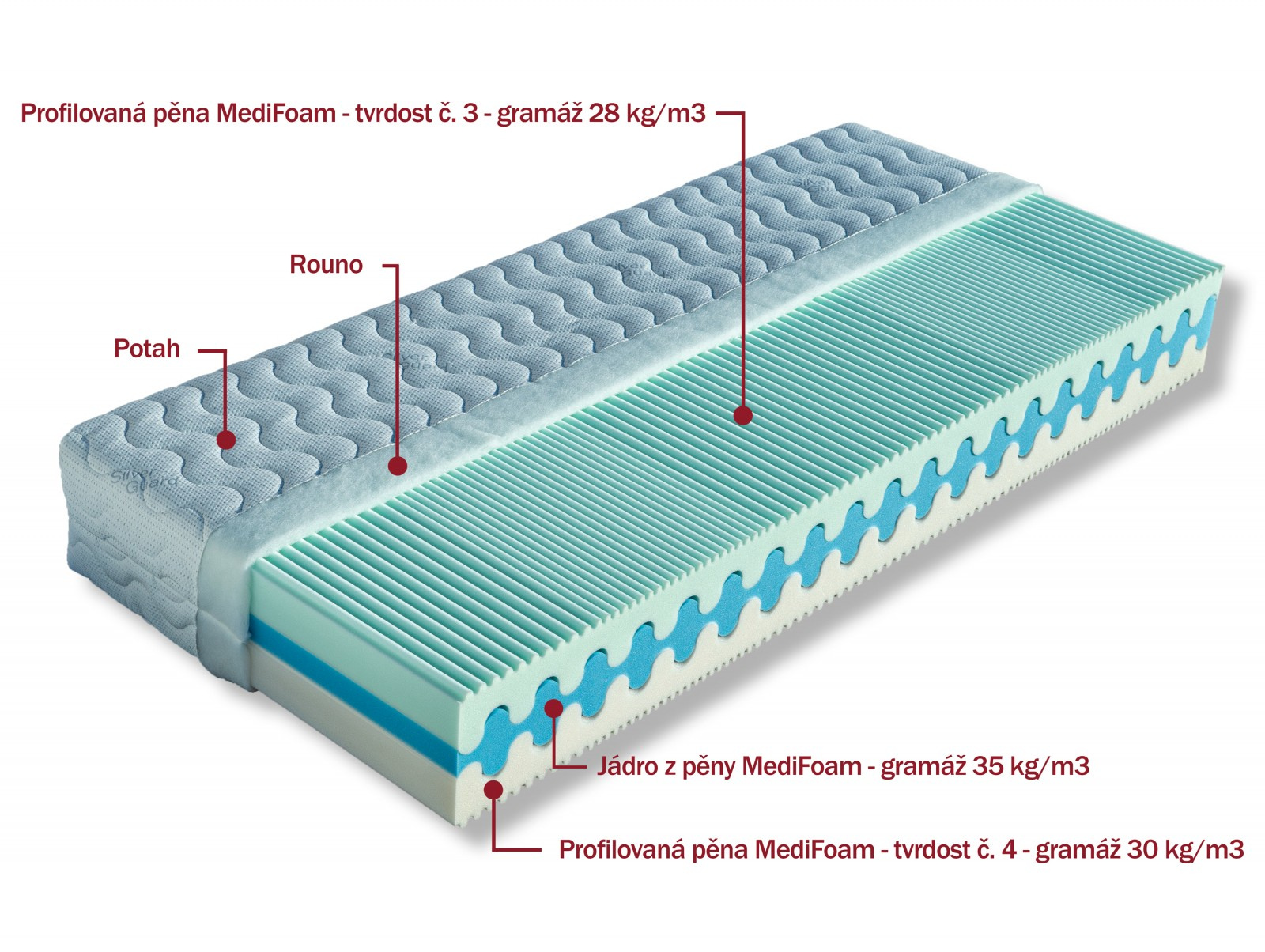 | výška včetně potahu | úplet, Aloe Vera | SilverGuard, Lyocell, Medicott, Levandule |
