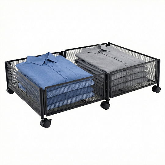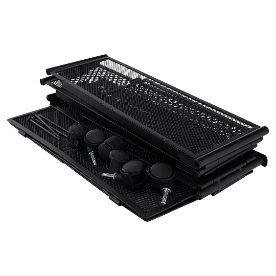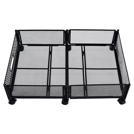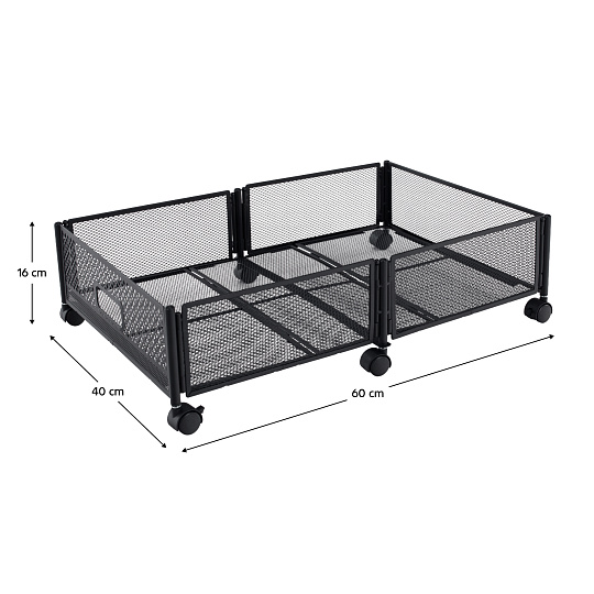 Materiál: kov Barva: černá Rozměry (ŠxHxV): 60x40x16 cm Skládací Na kolečkách Plastová kolečka s brzdou Jednoduchá manipulace Zabezpečená cirkulace vzduchu Pod postel Pro uskladnění oblečení, hraček a obuvi Multifunkční Praktický Dodáváno v demontu