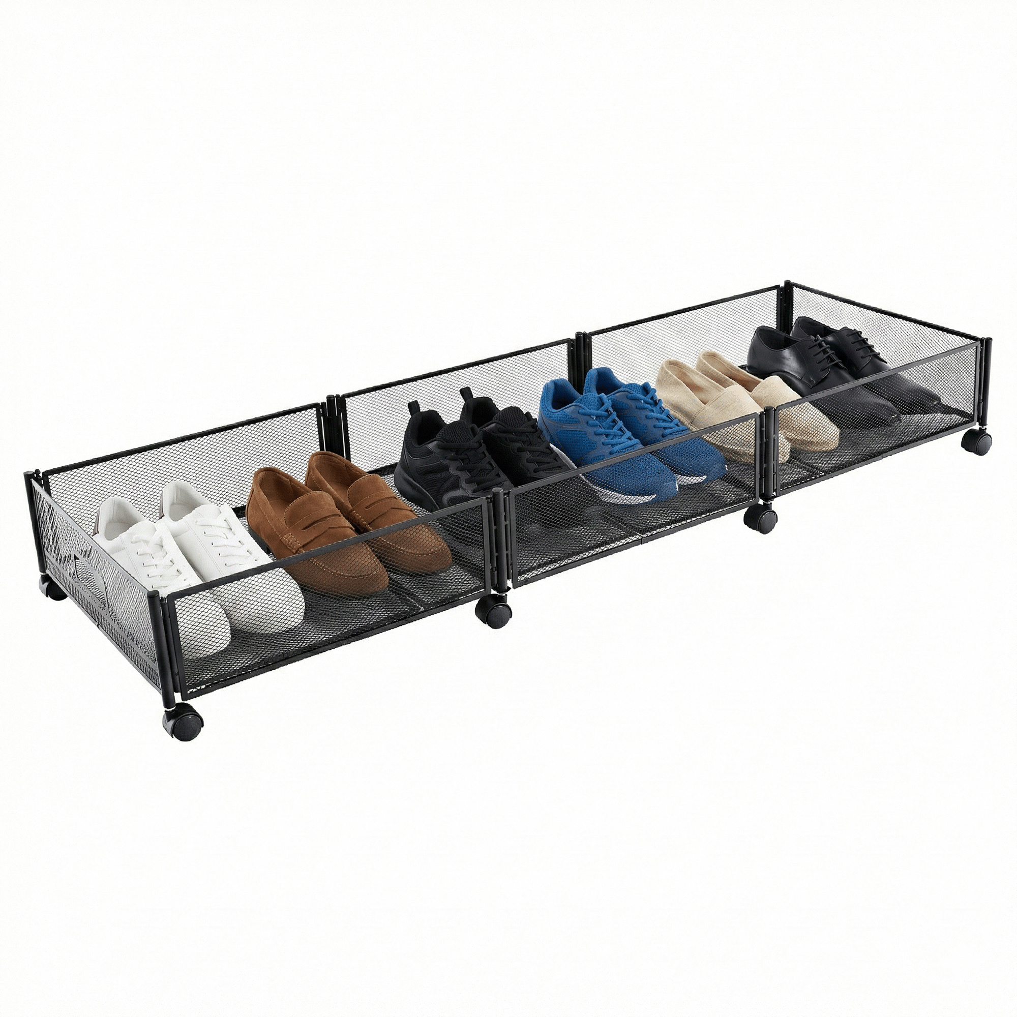 Materiál: kov Barva: černá Rozměry (ŠxHxV): 120x40x16 cm Skládací Na kolečkách Plastová kolečka s brzdou Jednoduchá manipulace Zabezpečená cirkulace vzduchu Pod postel Pro uskladnění oblečení, hraček a obuvi Multifunkční Praktický Dodáváno v demontu