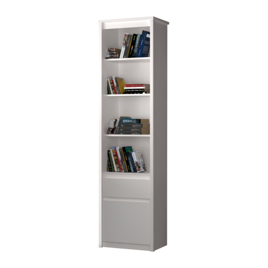 Materiál: DTD laminovaná/ABS hrany Barva: bílá Rozměry (ŠxHxV): 55,6x36,2x210,6 cm Tloušťka materiálu: 1,6-3,2 cm Otevřený i uzavřený úložný prostor Skříňka s dvířky Se šuplíkem Výška šuplíku: 17 cm S policemi Nosnost police: 5 kg Plastové nožičky Moderní design Doporučujeme připevnit ke zdi Dodáváno v demontu