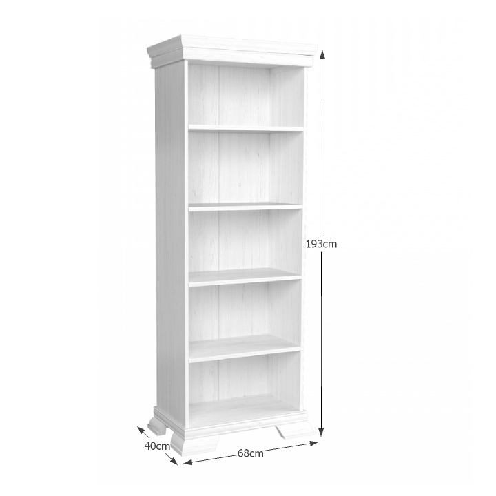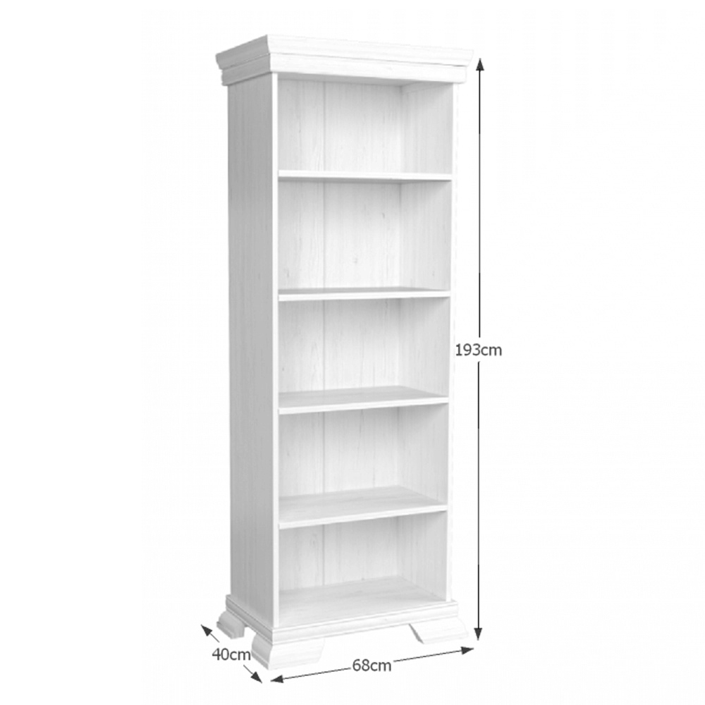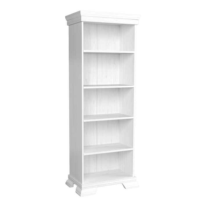 Otevřený regál KR1 KORA. Barevné provedení sosna andersen. Materiál laminovaná DTD, MDF. Rozměry (ŠxHxV): 68x40x193 cm Tloušťka materiálu korpus: 15 mm Tloušťka materiálu vrchní desky: 22 mm Tloušťka materiálu dolní desky: 22 mm Výška spodního prostoru od podlahy: 10,5 cm