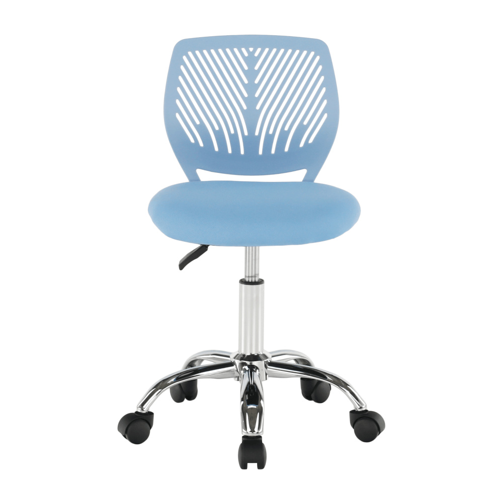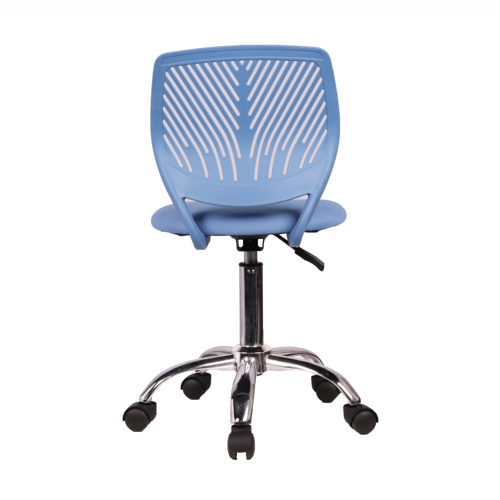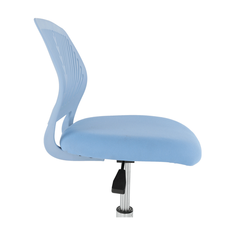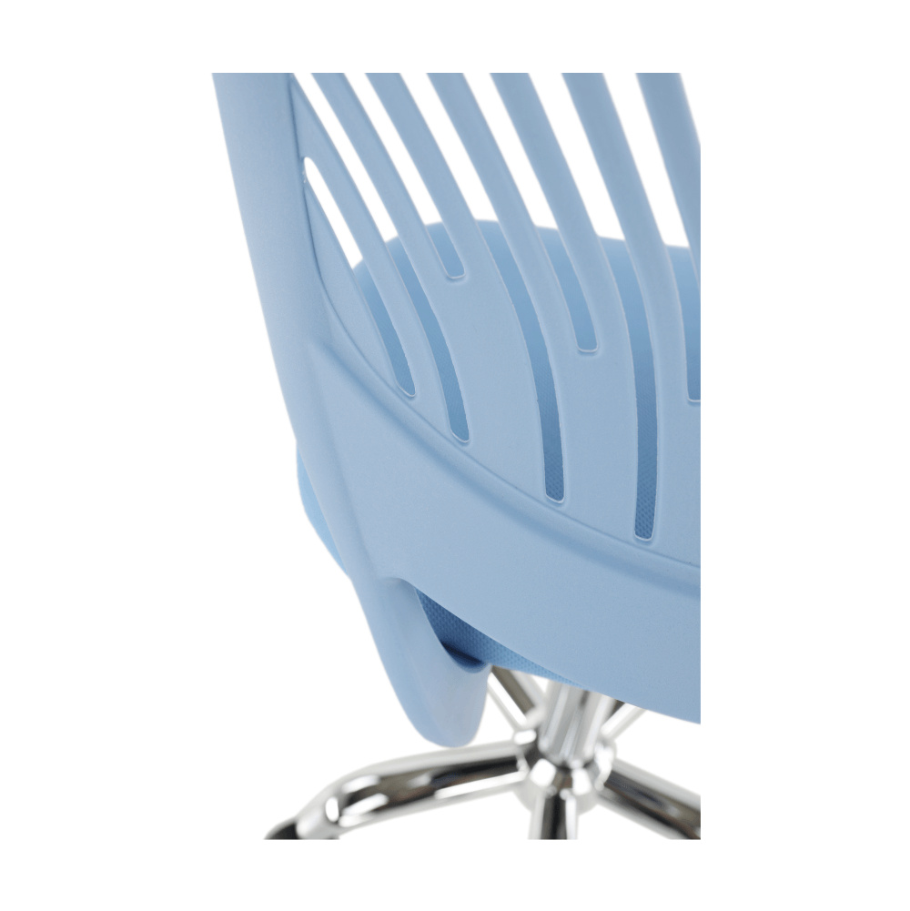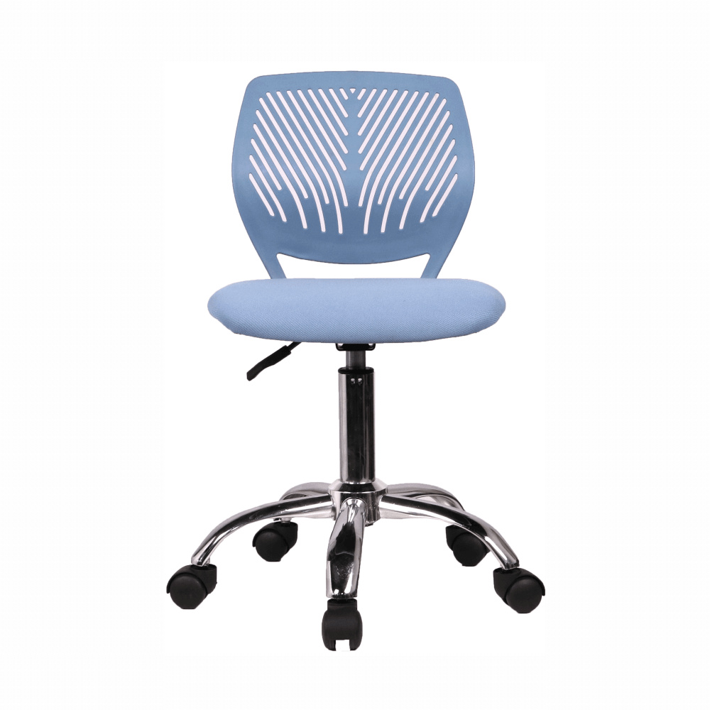 Materiál: polyester / kov Oděruodolnost textilie podle testu Martindale: 100 000 oděrek Barva: modrá / chrom Rozměry (ŠxHxV): 53x53x74,5-86,5 cm Nastavitelná výška sedu: 42-54 cm Hloubka sedu: 38 cm Šířka sedu: 40 cm Výška zádové opěrky: 32 cm Šířka zádové opěrky: 36 cm Nosnost: 80 kg otočná S kolečky perforované opěradlo Dodávané v demontu