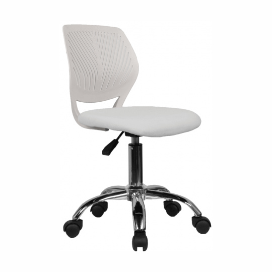 Materiál: polyester / kov Oděruodolnost textilie podle testu Martindale: 100 000 oděrek Barva: šedá / chrom Rozměry (ŠxHxV): 53x53x74,5-86,5 cm Nastavitelná výška sedu: 42-54 cm Hloubka sedu: 38 cm Šířka sedu: 40 cm Výška zádové opěrky: 32 cm Šířka zádové opěrky: 36 cm Nosnost: 80 kg otočná S kolečky perforované opěradlo Dodávané v demontu