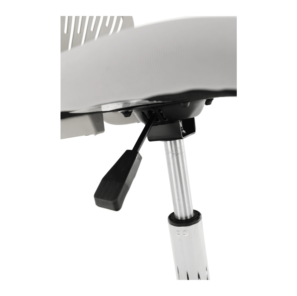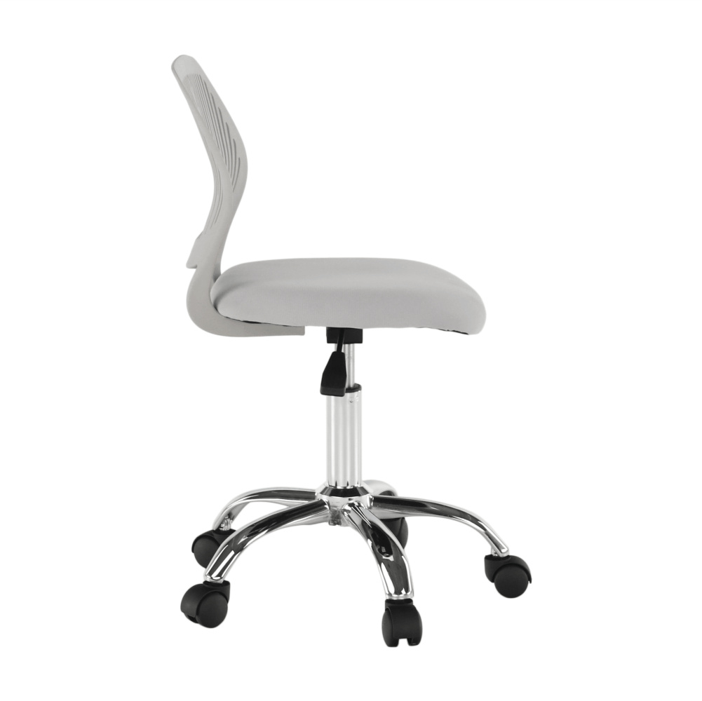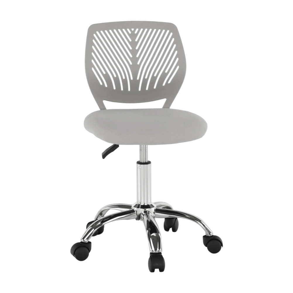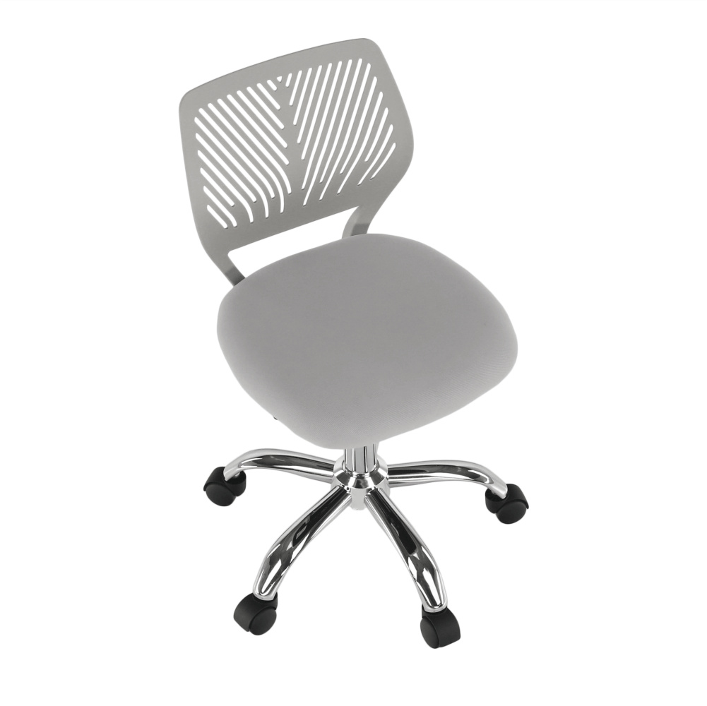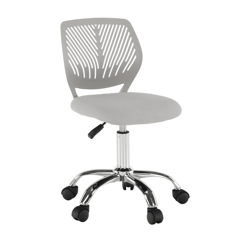 Materiál: polyester / kov Oděruodolnost textilie podle testu Martindale: 100 000 oděrek Barva: šedá / chrom Rozměry (ŠxHxV): 53x53x74,5-86,5 cm Nastavitelná výška sedu: 42-54 cm Hloubka sedu: 38 cm Šířka sedu: 40 cm Výška zádové opěrky: 32 cm Šířka zádové opěrky: 36 cm Nosnost: 80 kg otočná S kolečky perforované opěradlo Dodávané v demontu