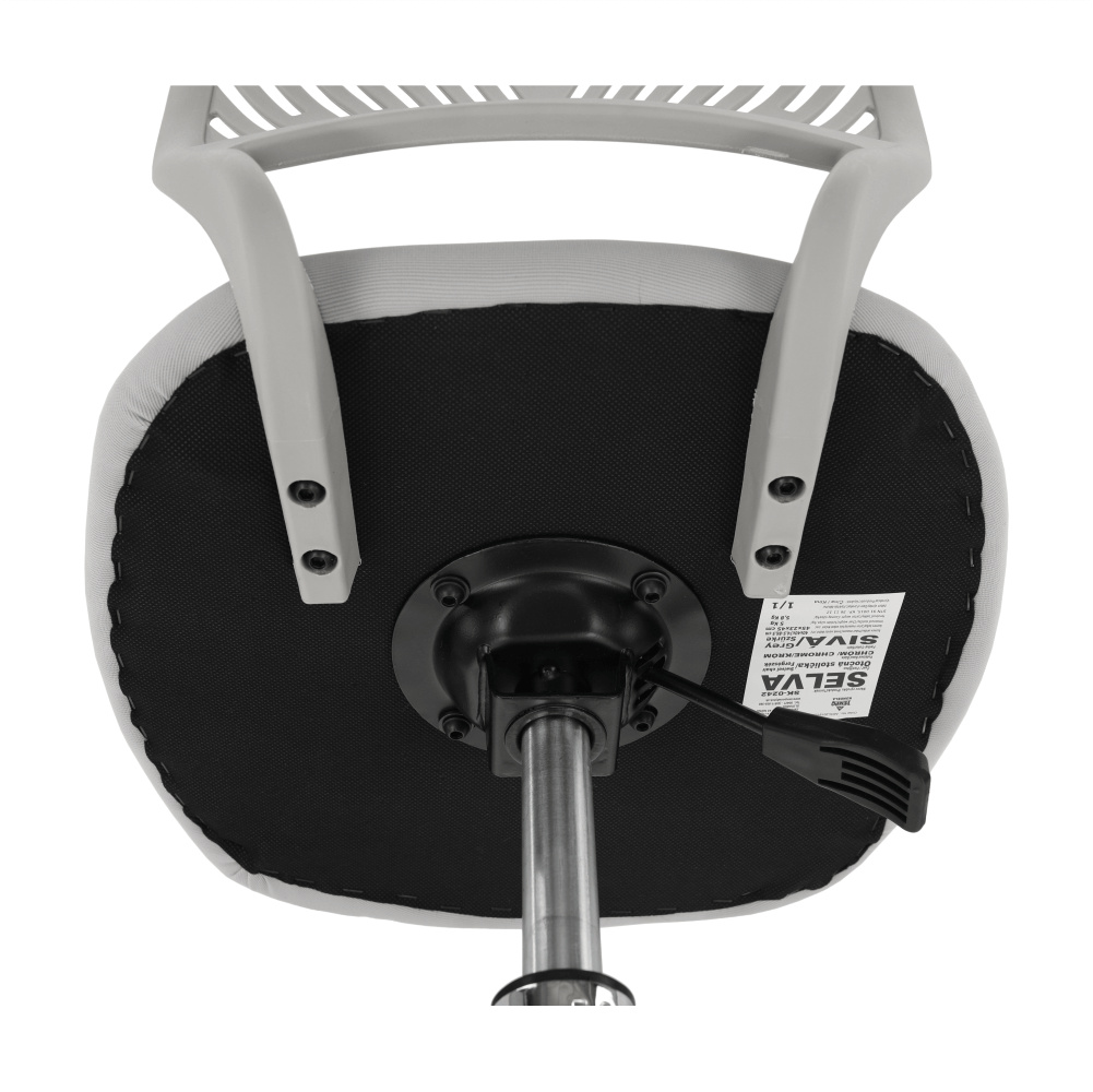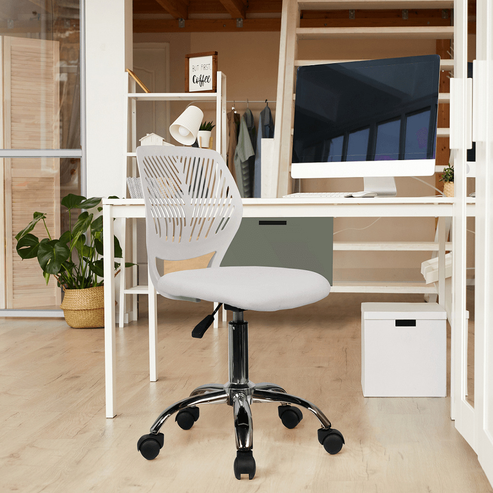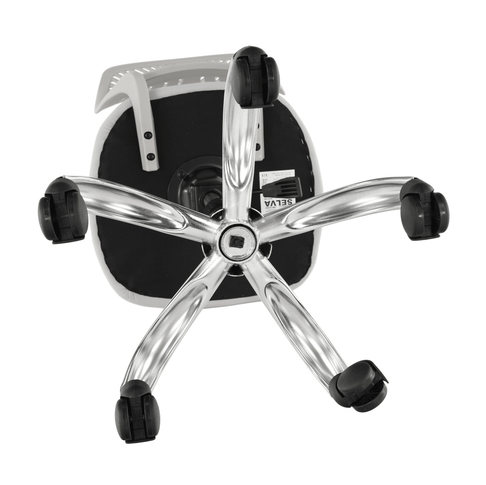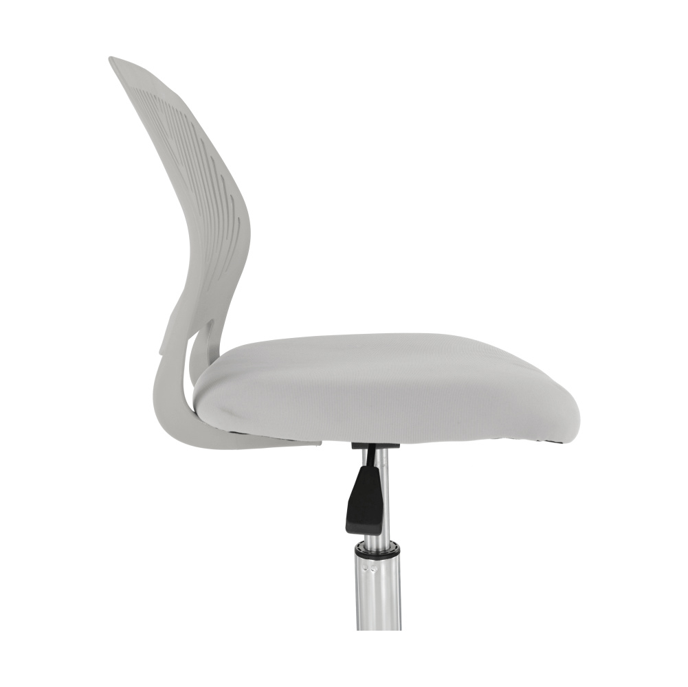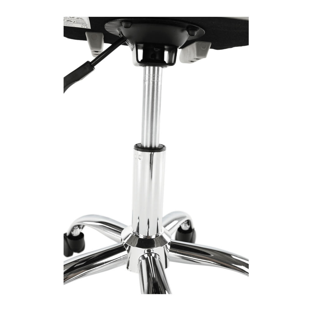 Materiál: polyester / kov Oděruodolnost textilie podle testu Martindale: 100 000 oděrek Barva: šedá / chrom Rozměry (ŠxHxV): 53x53x74,5-86,5 cm Nastavitelná výška sedu: 42-54 cm Hloubka sedu: 38 cm Šířka sedu: 40 cm Výška zádové opěrky: 32 cm Šířka zádové opěrky: 36 cm Nosnost: 80 kg otočná S kolečky perforované opěradlo Dodávané v demontu