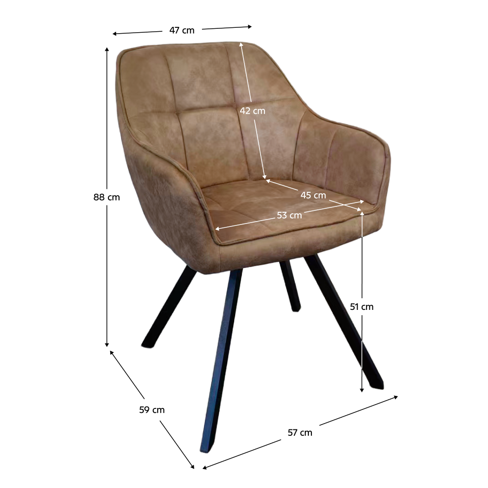 Materiál: látka s efektem broušené kůže/kov Oděruodolnost textilie podle testu Martindale: 68 000 oděrů Barva: šedohnědá/černá Rozměry (ŠxHxV): 57x59x88 cm Výška sedu: 51 cm Hloubka sedu: 45 cm Šířka sedu: 53 cm Šířka zádové opěrky: 47 cm Výška zádové opěrky: 42 cm Nosnost: 100 kg Hmotnost: 6,35 kg Otočné sedátko Designové Prošívané Dodáváno v demontu