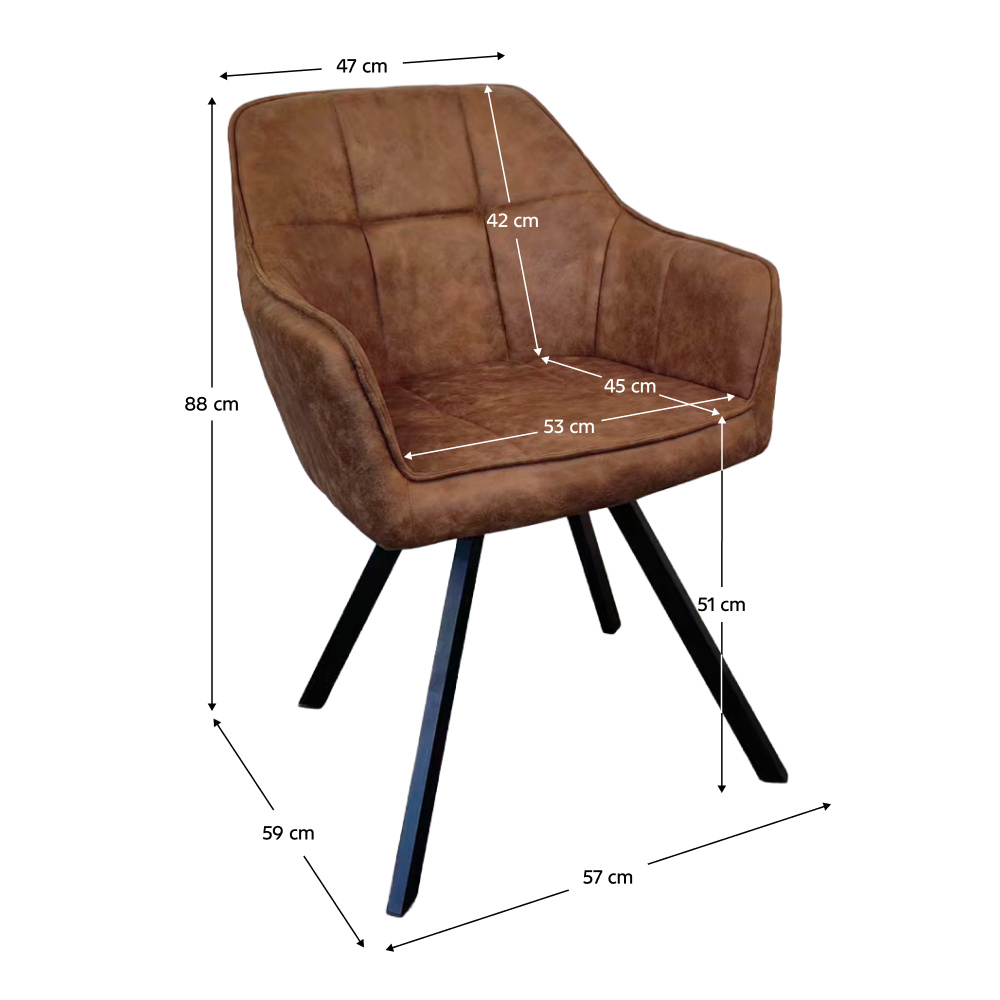 Materiál: látka s efektem broušené kůže/kov Oděruodolnost textilie podle testu Martindale: 68 000 oděrů Barva: tmavě hnědá/černá Rozměry (ŠxHxV): 57x59x88 cm Výška sedu: 51 cm Hloubka sedu: 45 cm Šířka sedu: 53 cm Šířka zádové opěrky: 47 cm Výška zádové opěrky: 42 cm Nosnost: 100 kg Hmotnost: 6,35 kg Otočné sedátko Designové Prošívané Dodáváno v demontu