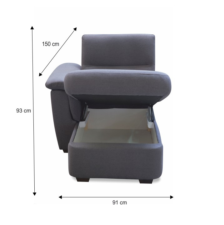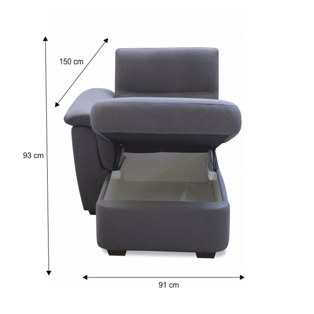 Otoman s úložným prostorem, šedá látka, na objednávku, levá, BORN OTT 1B ZP