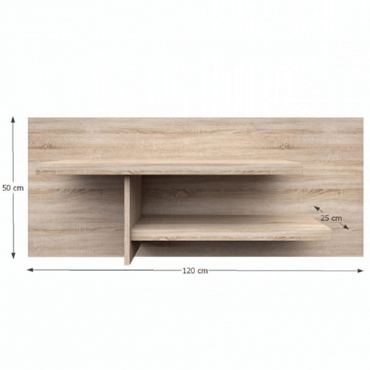 RTV stolek 2D, NORTY TYP 16 Materiál: DTD laminovaná Provedení: dub sonoma Rozměry (ŠxHxV): 127x42x50,5 cm Tloušťka materiálu: 32 mm Tloušťka materiálu zbývající části: 16 mm Dodávané v demontu. Hmotnost: 30.4kg
