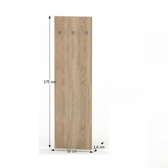 Věšákový panel TEMPO ASISTENT NEW 030 Materiálové provedení: DTD laminovaná Barevné provedení: dub sonoma Rozměry (ŠxHxV): 50x1,6x175 cm Tloušťka materiálu: 16 mm Dodávané v demontu.
