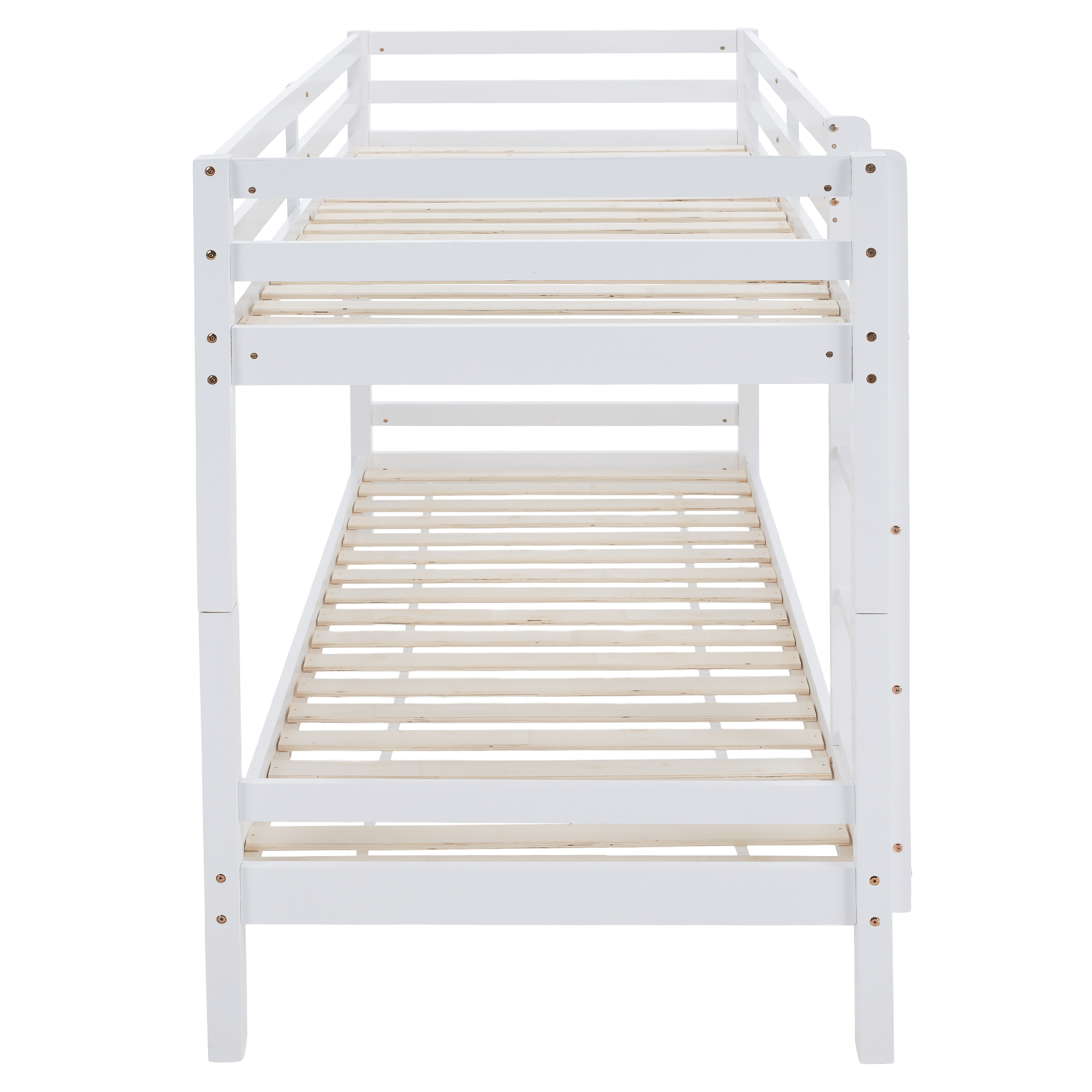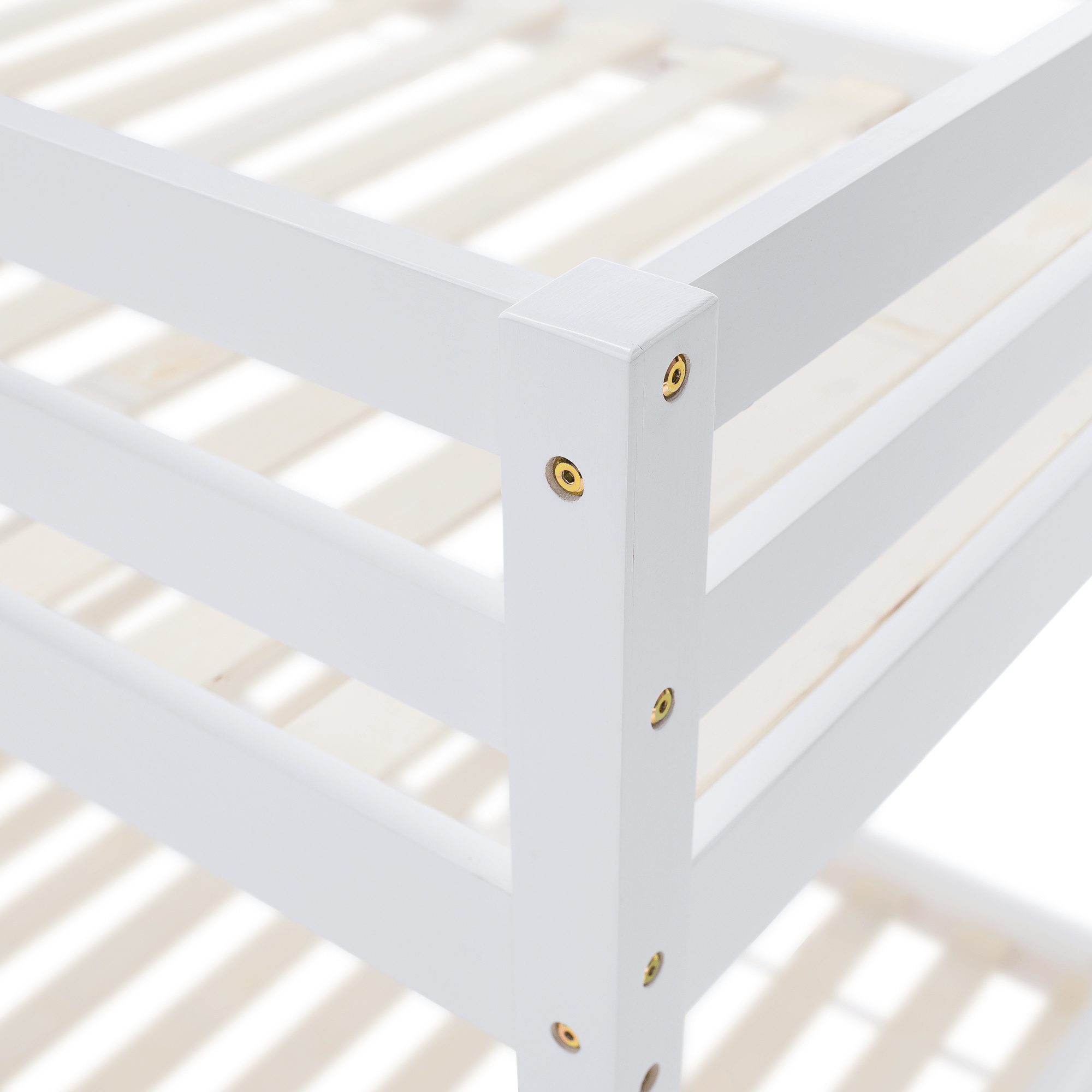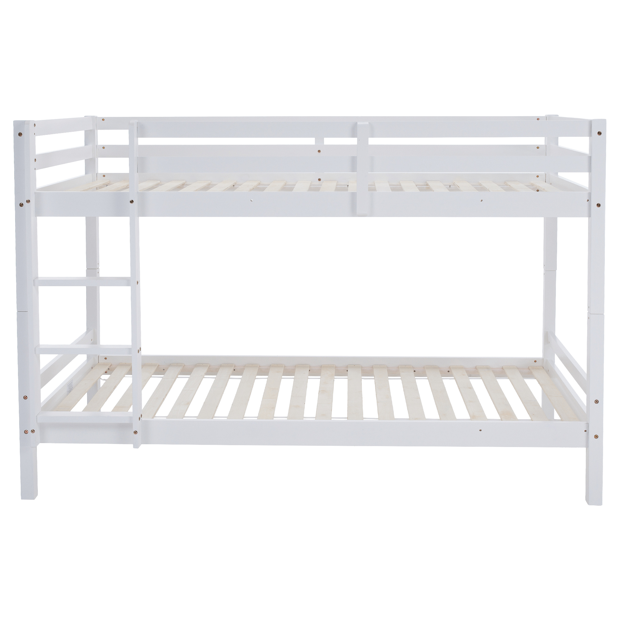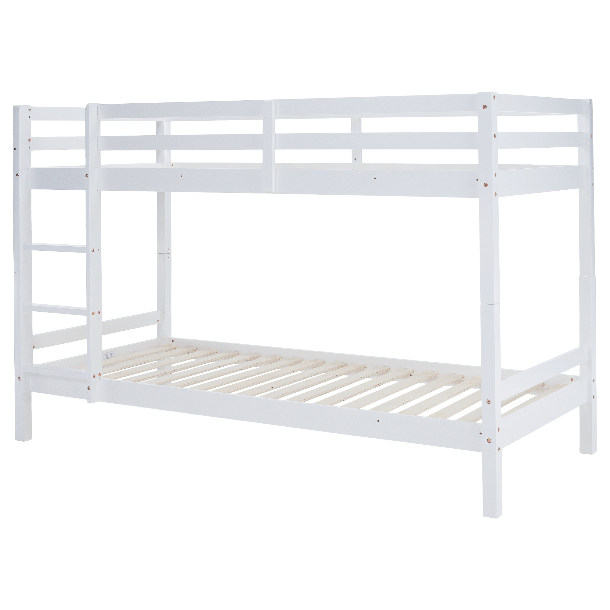 Materiál: borové dřevo Barva: bílá Rozměry (ŠxHxV): 208x101x140 cm Plocha na spaní (ŠxH): 90x200 cm Výška mezi spodním a horním lůžkem: 75 cm Tloušťka materiálu: 2 cm Nosnost na horní lůžko: 90 kg Nosnost na dolní lůžko: 95 kg Doporučená výška matrace na spodní lůžko: 20 cm Doporučená výška matrace na horní lůžko: 14 cm Na nožičkách Výška nožiček spodní lůžko: 21 cm Výška nožiček horní lůžko: 35 cm Tloušťka materiálu nohy: 5x5 cm Hrany postele jsou zaoblené Dodáváno s žebříkem Možnost upevnit žebřík na pravé nebo levé straně Horní postel se zábranou proti pádu Rozložitelná na dvě lůžka Dodáváno s rolovaným roštem Dodáváno bez matrace Možnost zakoupit pružinové matrace z naší nabídky Použité barvy a laky splňují všechny stanovené normy a nezávadnosti Dodáváno v demontu