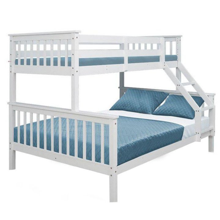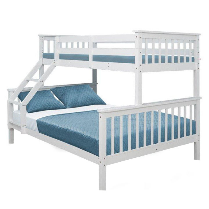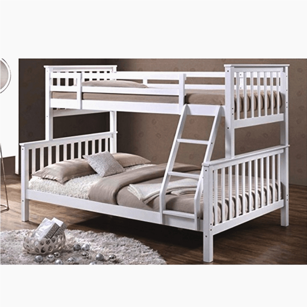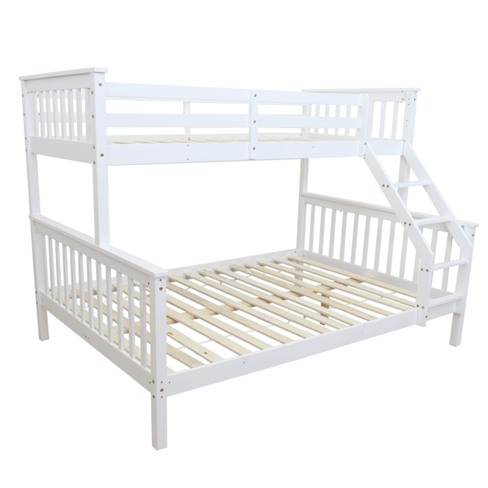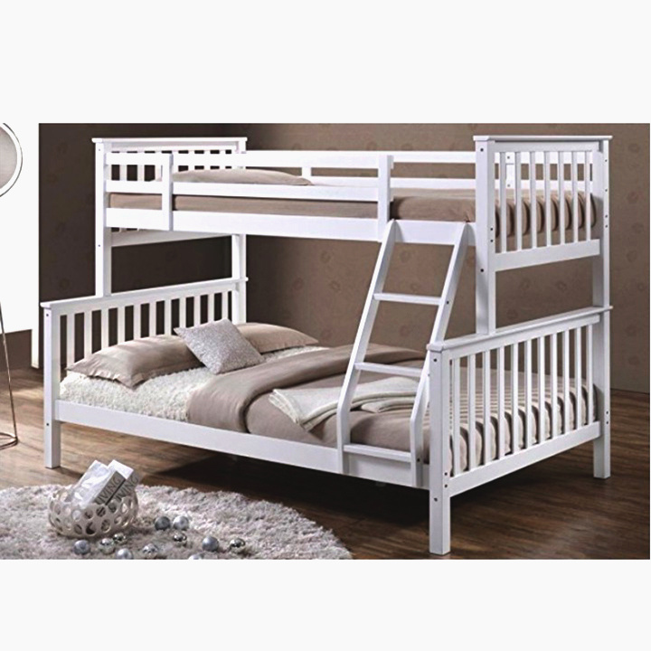 Dvoupatrová rozložitelná postel s roštem BAGIRA Barva: bílá Materiál: borovicové dřevo / překližka (rošt) Rozměry (ŠxHxV): 211x151x150 cm Plocha na spaní dolní lůžko (ŠxH): 140x200 cm Plocha na spaní horní lůžko (ŠxH): 90x200 cm Výška po rošt spodního lůžka: 23 cm Lůžka mají po rozložení odlišnou výšku Maximální výška matrace na horní lůžko: 14 cm Tloušťka materiálu: 20 mm Tloušťka materiálu nohou (ŠxH): 50x50 mm Nosnost horní lůžko: 80 kg Nosnost spodní lůžko: 100 kg Dodávané s latkovým roštem. Dodávané v demontu. Vhodné pro 3 osoby