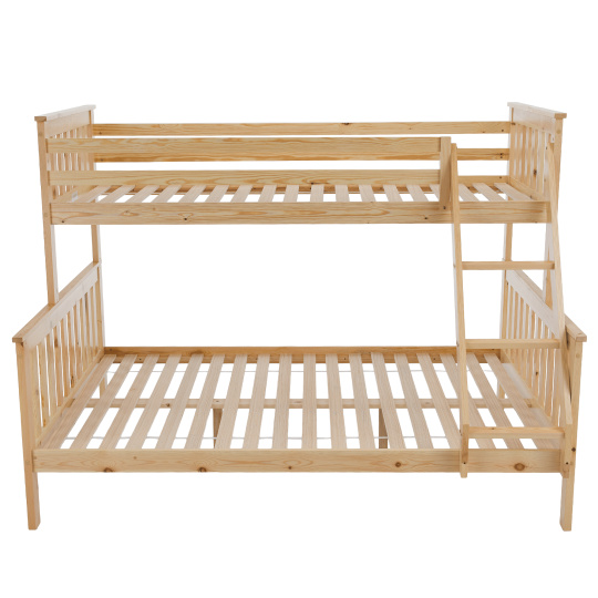 Patrová rozložitelná postel s roštem LUINI Barva: přírodní Materiál: borovicové dřevo / překližka (rošt) Rozměry (ŠxHxV): 208x156x152 cm Plocha na spaní dolní lůžko (ŠxH): 140x200 cm Plocha na spaní horní lůžko (ŠxH): 90x200 cm Nosnost horní lůžko: 80 kg Nosnost spodní lůžko: 100 kg Maximálna výška matraca na horné lôžko: 14 cm Tloušťka materiálu: 20 mm Tloušťka materiálu nohou (ŠxH): 30x70 mm Lůžka mají po rozložení odlišnou výšku Dodávané s roštem. Dodávané bez matrace. Možnost dokoupit matraci s naší nabídky. Dodávané v demontu. Vhodná i pro 3 lidi