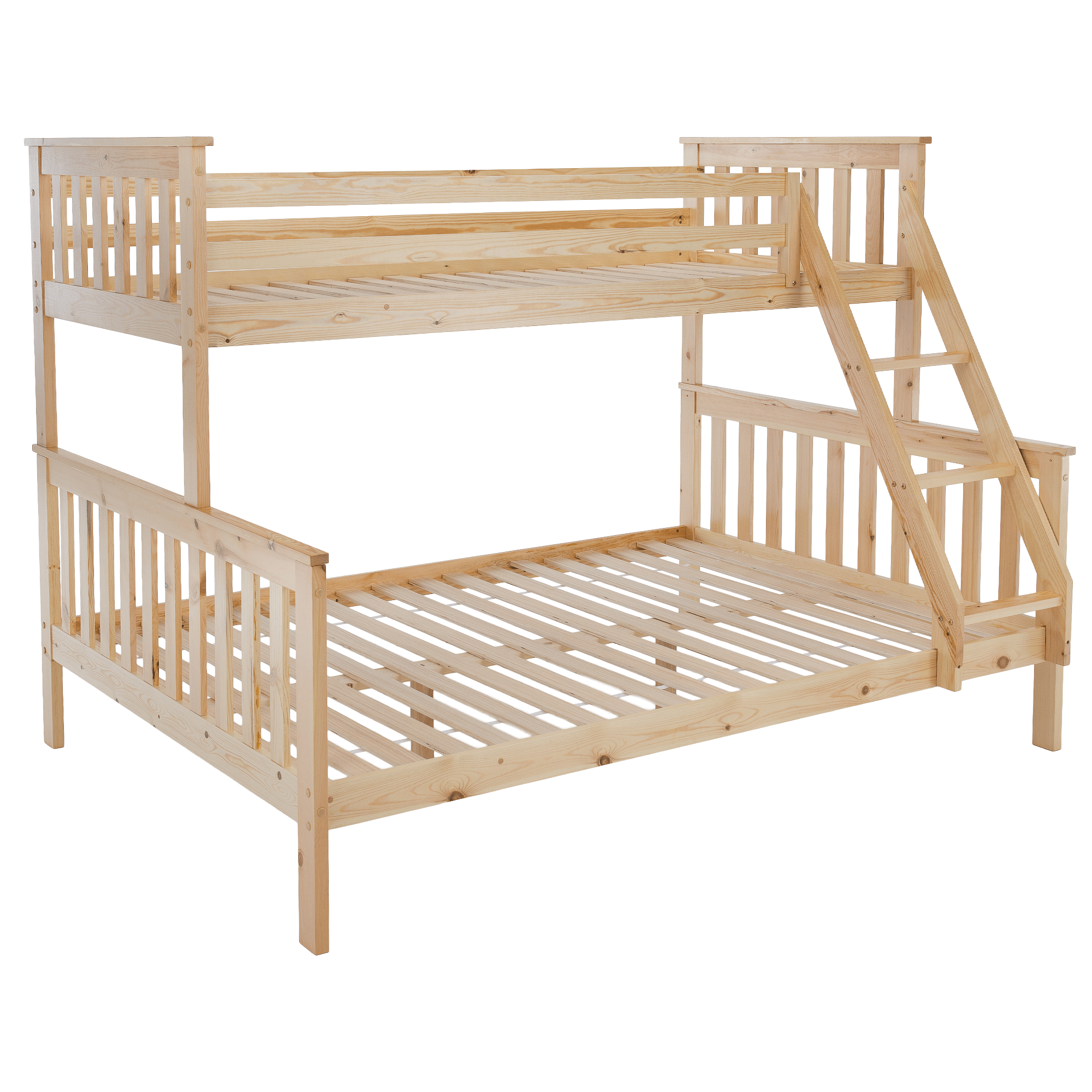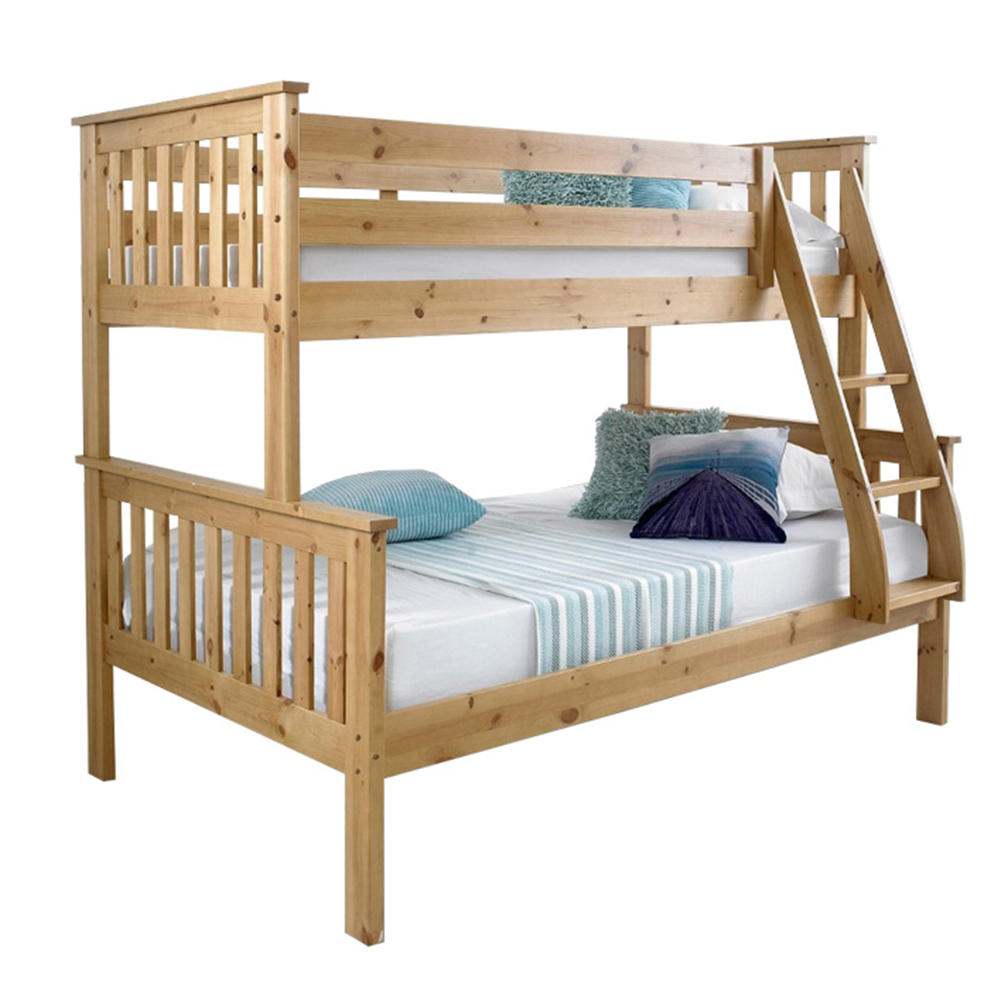 Patrová rozložitelná postel s roštem LUINI Barva: přírodní Materiál: borovicové dřevo / překližka (rošt) Rozměry (ŠxHxV): 208x156x152 cm Plocha na spaní dolní lůžko (ŠxH): 140x200 cm Plocha na spaní horní lůžko (ŠxH): 90x200 cm Nosnost horní lůžko: 80 kg Nosnost spodní lůžko: 100 kg Maximálna výška matraca na horné lôžko: 14 cm Tloušťka materiálu: 20 mm Tloušťka materiálu nohou (ŠxH): 30x70 mm Lůžka mají po rozložení odlišnou výšku Dodávané s roštem. Dodávané bez matrace. Možnost dokoupit matraci s naší nabídky. Dodávané v demontu. Vhodná i pro 3 lidi