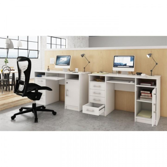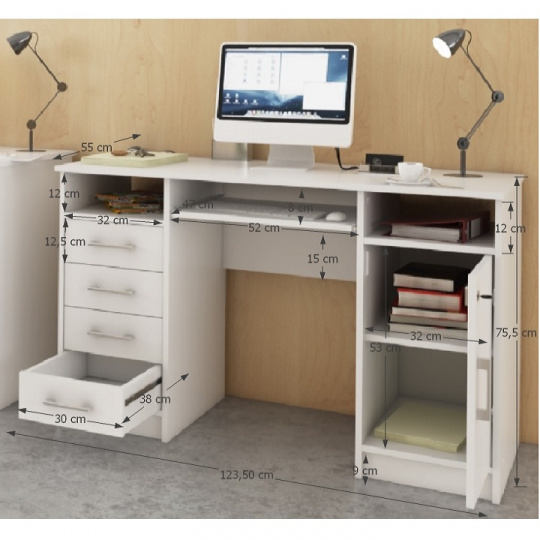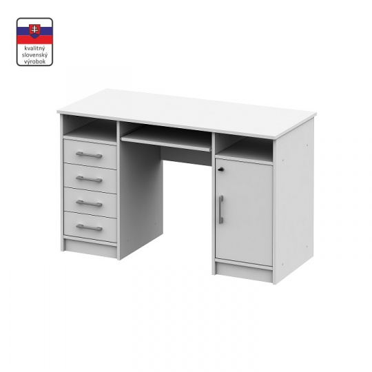 Pc stolek se zamykatelnou skříňkou, Zámek je na dveřích Materiál: DTD laminovaná Provedení: bílá Rozměry (ŠxHxV) 123,5x55x75,5 cm. Tloušťka materiálu: 16 mm Dodávané v demontu.