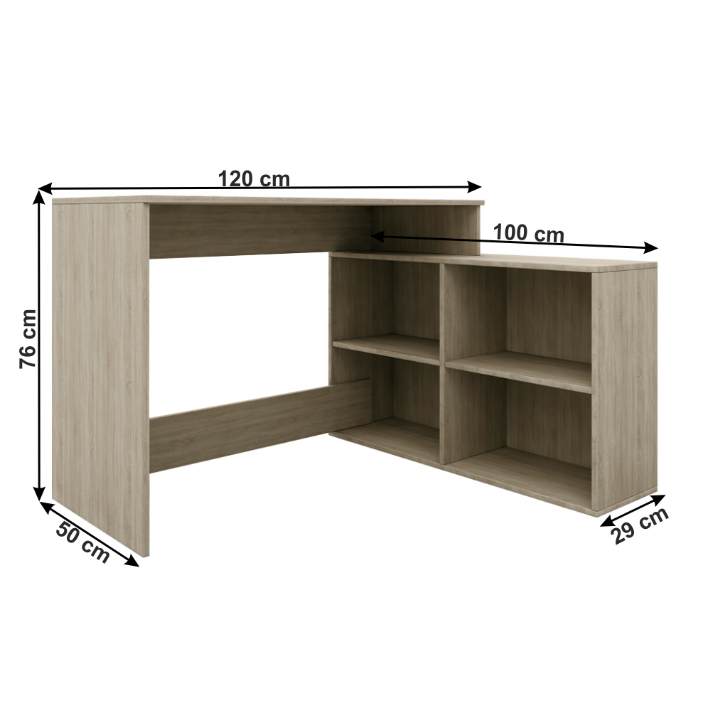 Materiál: DTD laminovaná Provedení: dub sonoma Rozměry (ŠxHxV): 100 / 120x29 / 50x76 cm Tloušťka materiálu: 16 mm rohový univerzální S poličkami Dodáván v demontu