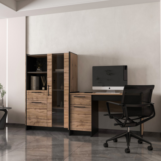 PC stůl 130, dub wotan/černá, AMONI 1D1S