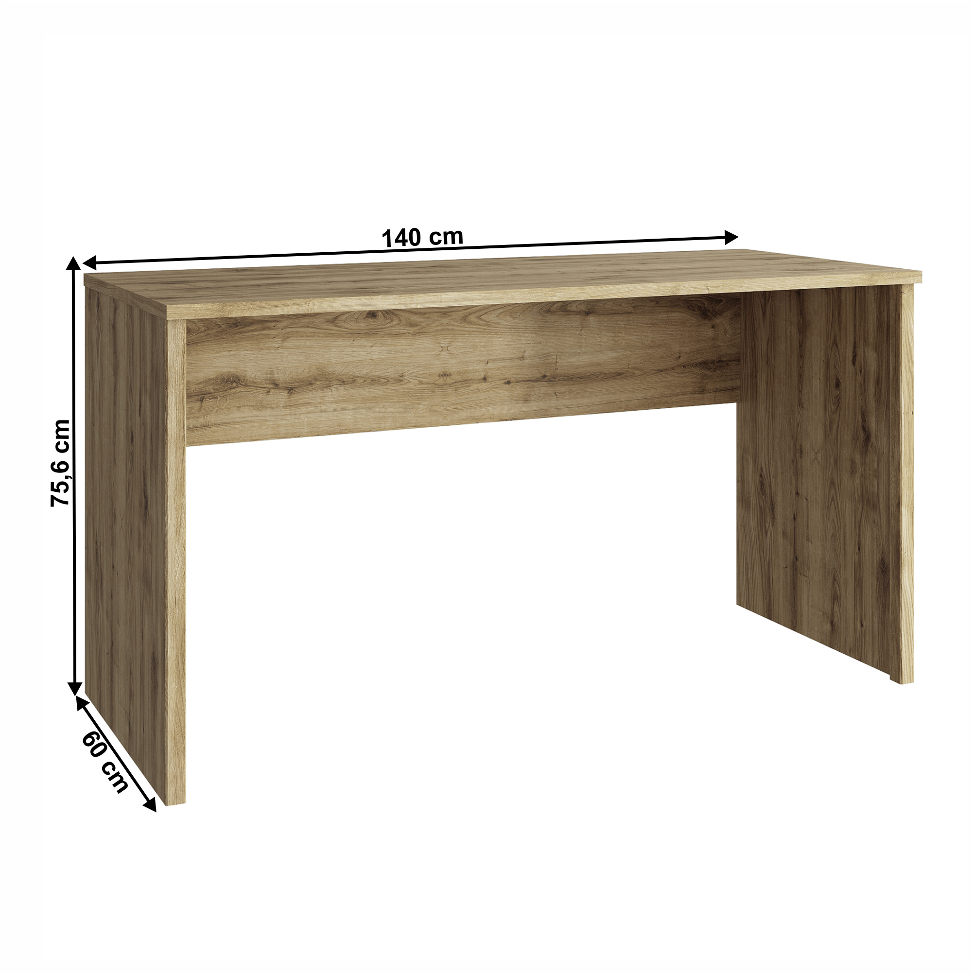 PC stůl DORSI 140 Materiál: DTD laminovaná/MDF Barva: dub navarra Rozměry (ŠxHxV): 140x60x75,6 cm Tloušťka materiálu: 1,6 cm Plastové úchytky Barva úchytek: černá Moderní design Dodáváno v demontu