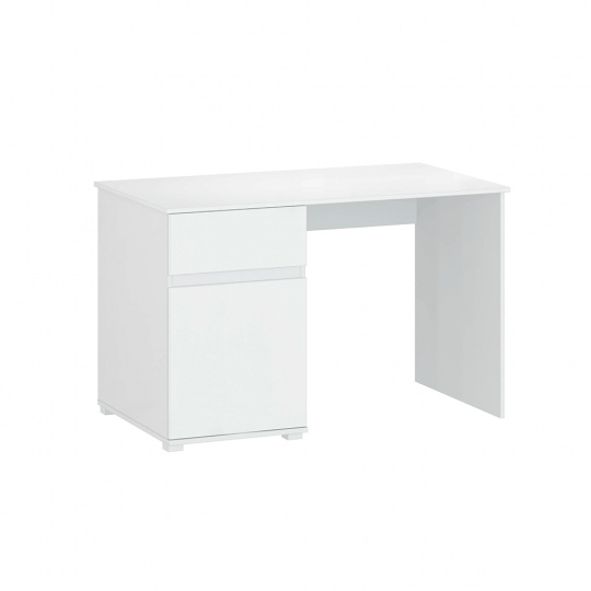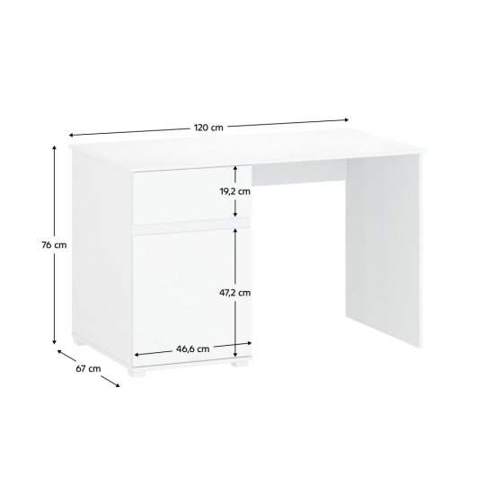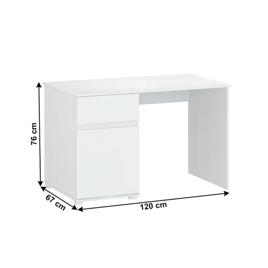 Materiál: laminovaná DTD / MDF Barva: bílý lesk Rozměry (ŠxHxV): 120x67x76 cm Obsahuje jednu zásuvku a jednu skříňku Dvířka bez úchytek ABS hrany moderní design Dodávané v demontu