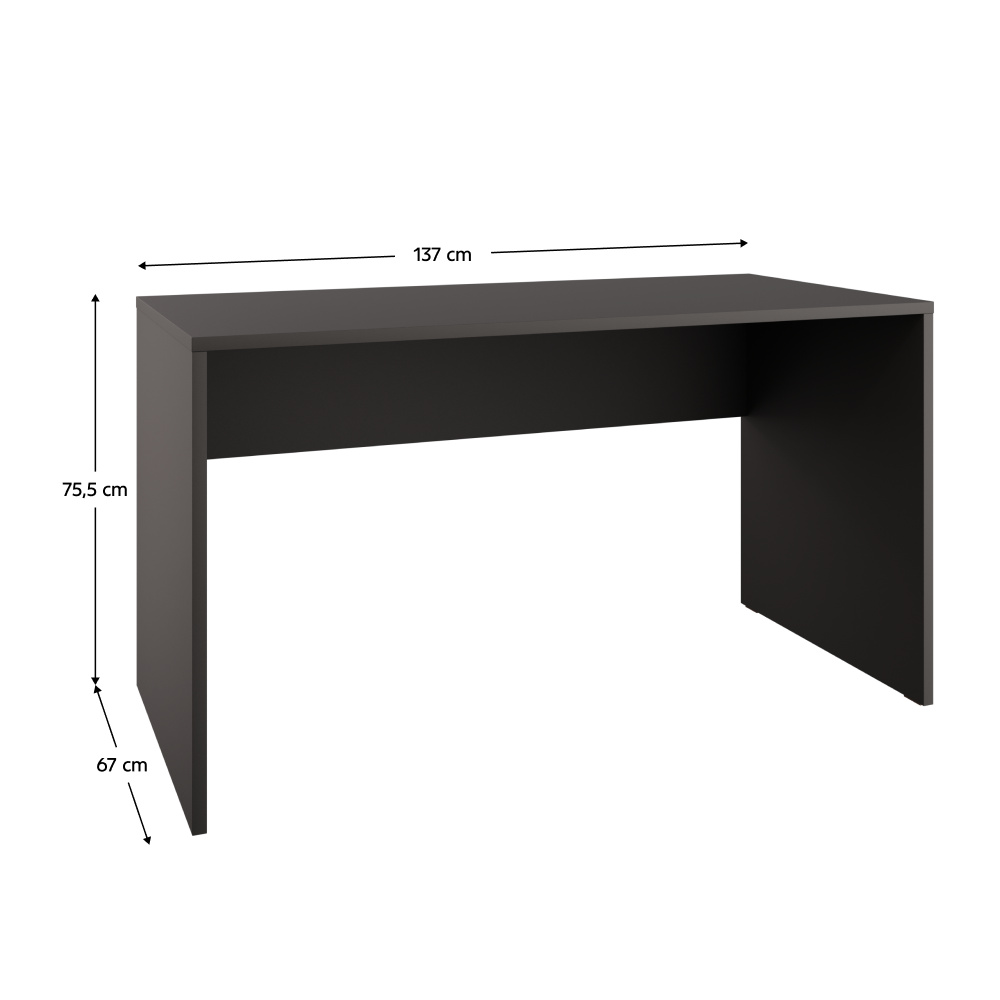 Materiál: DTD laminovaná/ABS hrany Barva: antracit Rozměry (ŠxHxV): 137x67x75,5 cm Tloušťka materiálu: 1,6-2,2 cm Plastové kluzáky Výška plastových kluzáků: 0,5 cm Dodáváno v demontu