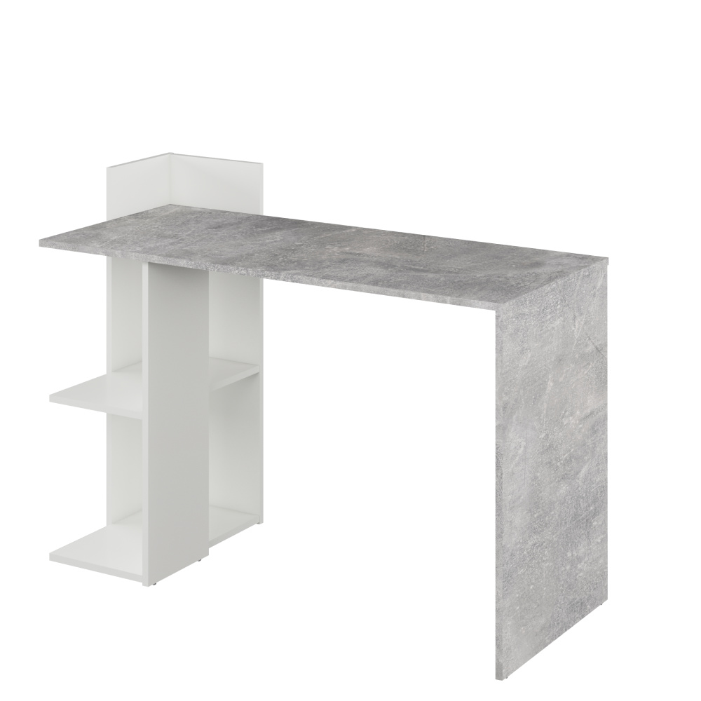 Materiál: DTD laminovaná Barva: beton/bílý Rozměry (ŠxHxV): 120x52x87,5 cm Rozměry police (ŠxH): 26,7x34,6 cm Tloušťka materiálu: 1,6 cm Otevřený úložný prostor S policemi Nosnost police: 5 kg Nosnost stolu: 35 kg Postaven na kluzácích Kvalitní slovenský výrobek Dodáváno v demontu