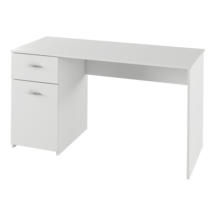 Pc stůl se šuplíkem a skříňkou BANY Materiál: DTD laminovaná Barva: bílá Rozměry (ŠxHxV): 140x60x76 cm Tloušťka materiálu korpus: 16 mm Dodávané v demontu.