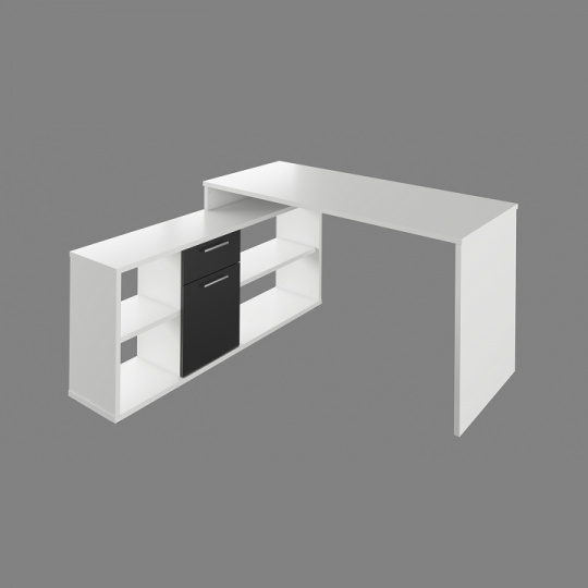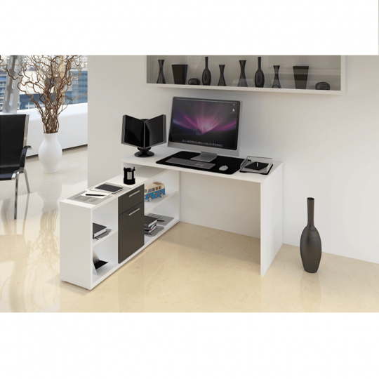 PC stůl rohový, materiál DTD laminovaná. Provedení černá / bílá. Rozměry ŠxHxV): 135x135x74 cm. Tloušťka materiálu: 16/22 mm