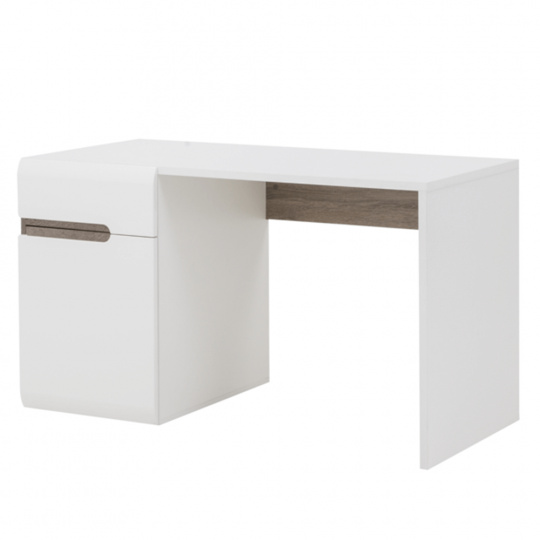 PC stůl LYNATET 80 Materiál: laminovaná DTD/fóliovaná MDF Barva: dub sonoma truflový/bílá s extra vysokým leskem Rozměry (ŠxHxV): 125x61,9x72,8 cm Tloušťka materiálu: 16 mm Se šuplíkem Se skříňkou Korpus je v matném provedení Dvířka jsou v provedení extra vysoký lesk Dodáváno v demontu