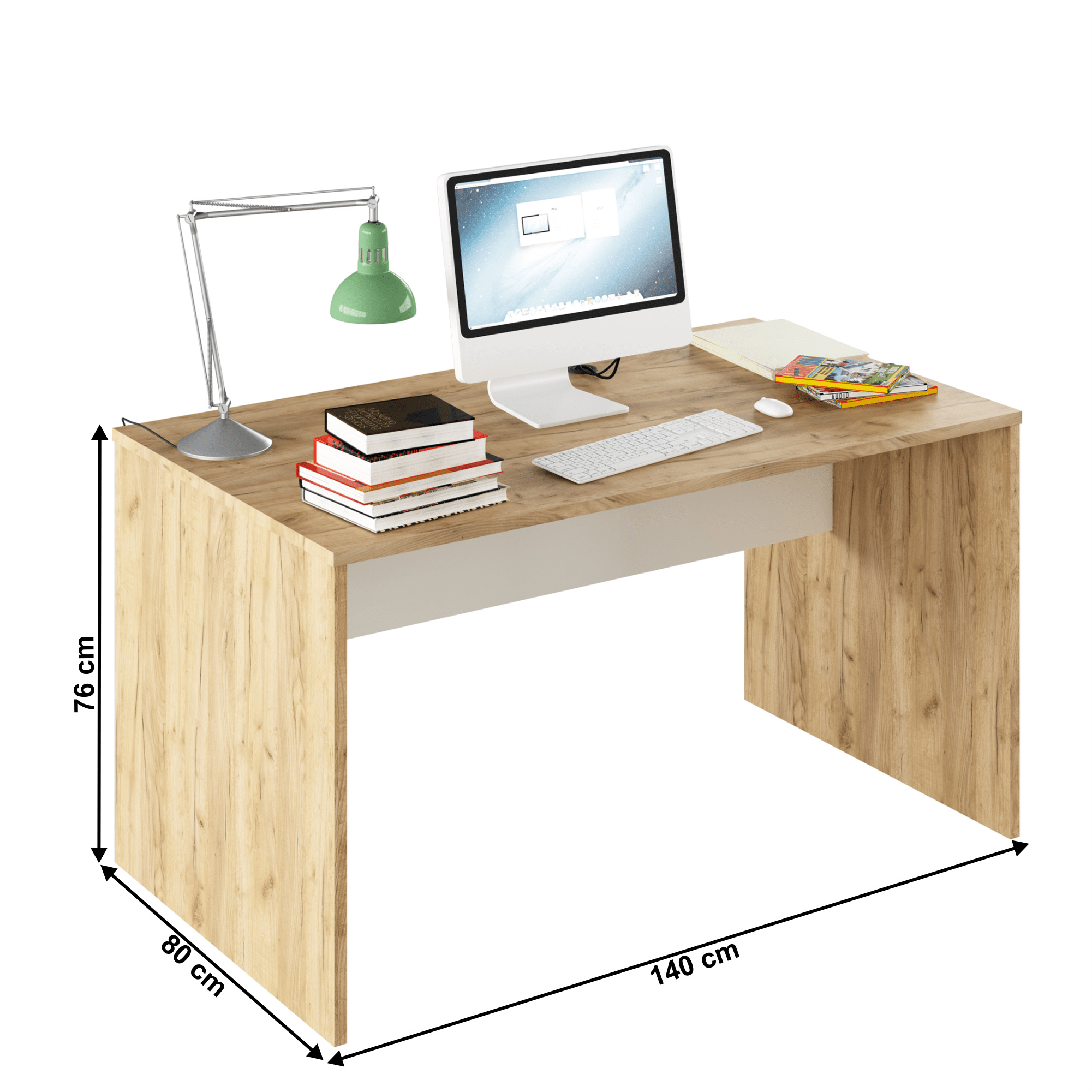 Psací stůl RIOMA TYP 11 Barevné provedení: dub artisan/bílá Materiál: DTD laminovaná Rozměry (ŠxHxV): 140x80x76 cm Tloušťka materiálu: 16/22 mm Dodávané bez kontejneru, kontejner je možné si dokoupit Dodávané v demontu.