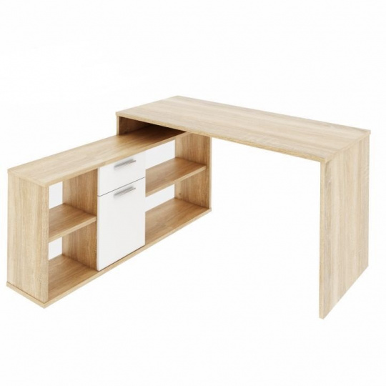 PC stůl rohový, materiál DTD fóliovaná. Provedení dub sonoma / bílá. Rozměry (ŠxVxH): 135x74x135 cm Tloušťka materiálu: 16/22 mm