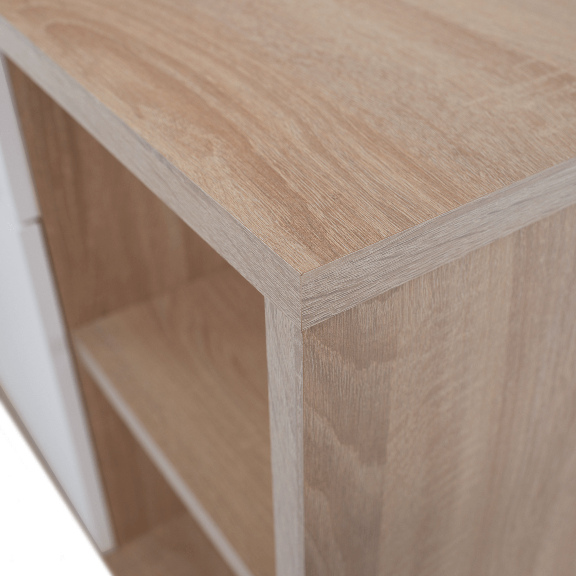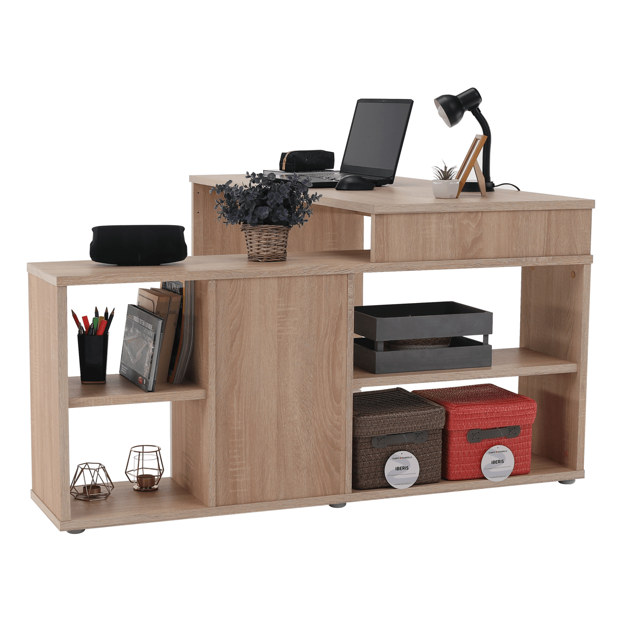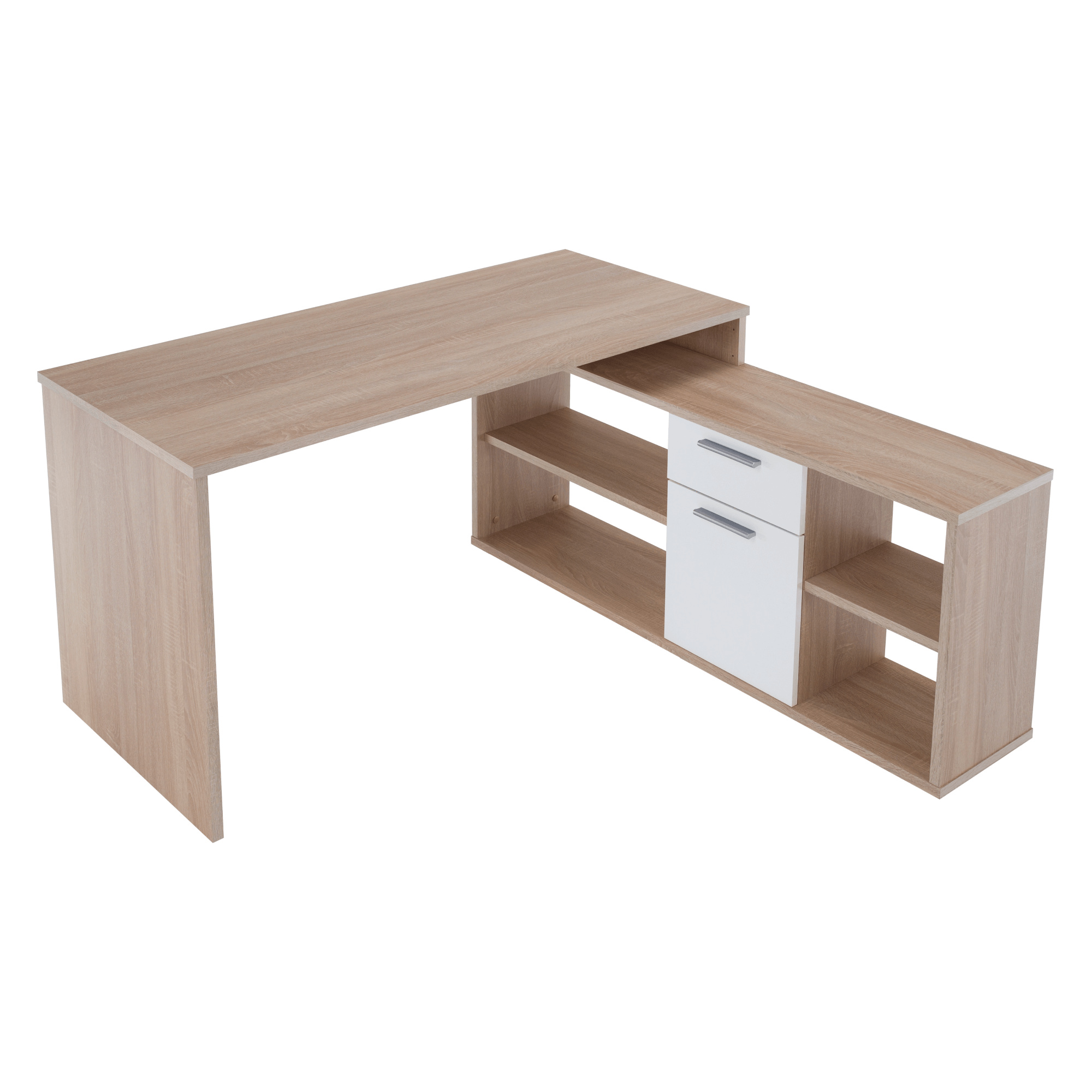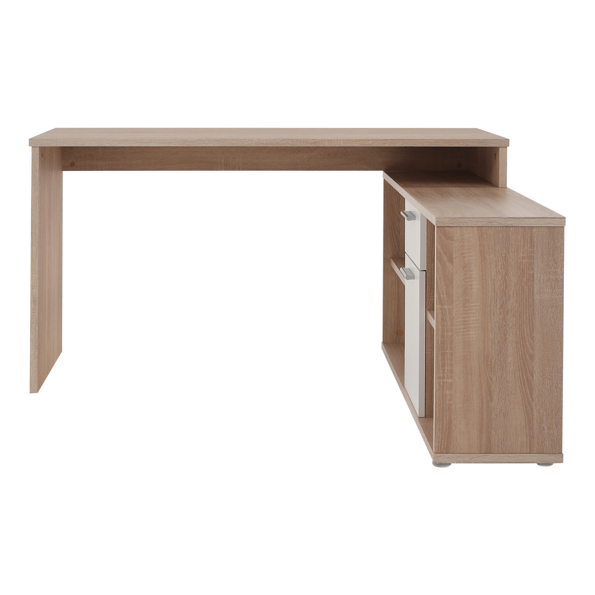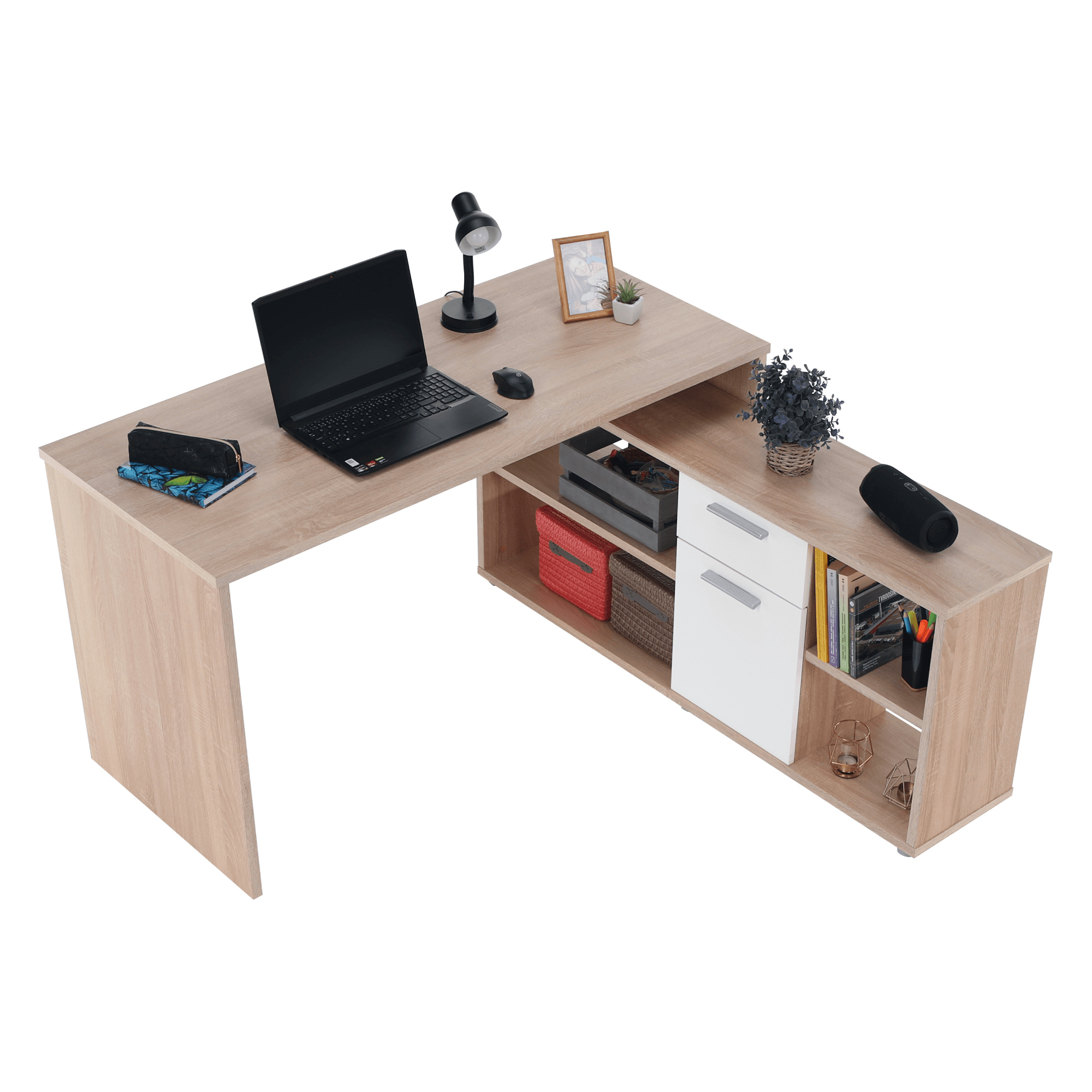 PC stůl rohový, materiál DTD fóliovaná. Provedení dub sonoma / bílá. Rozměry (ŠxVxH): 135x74x135 cm Tloušťka materiálu: 16/22 mm