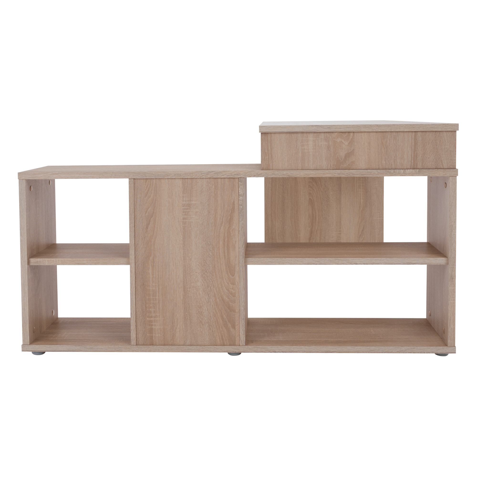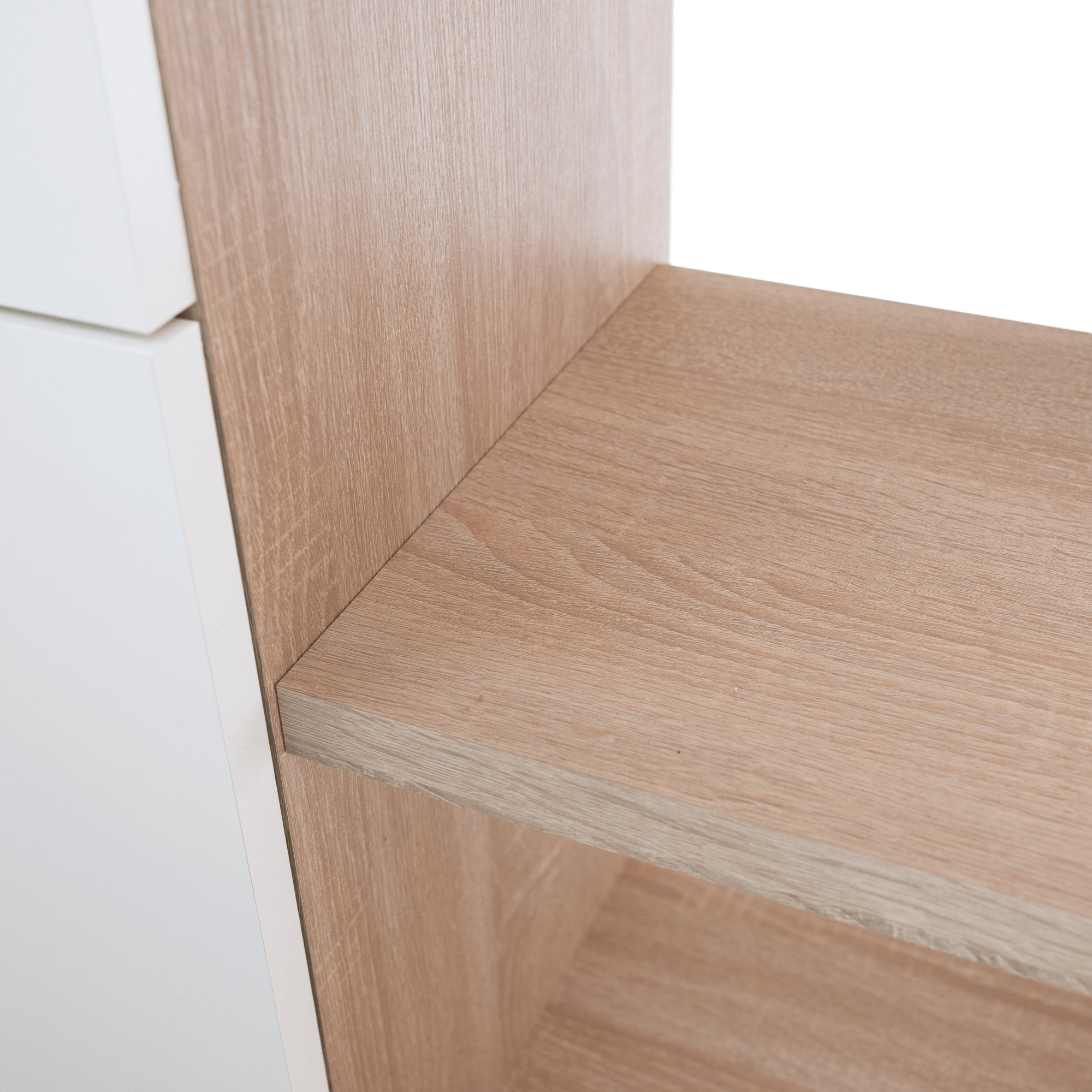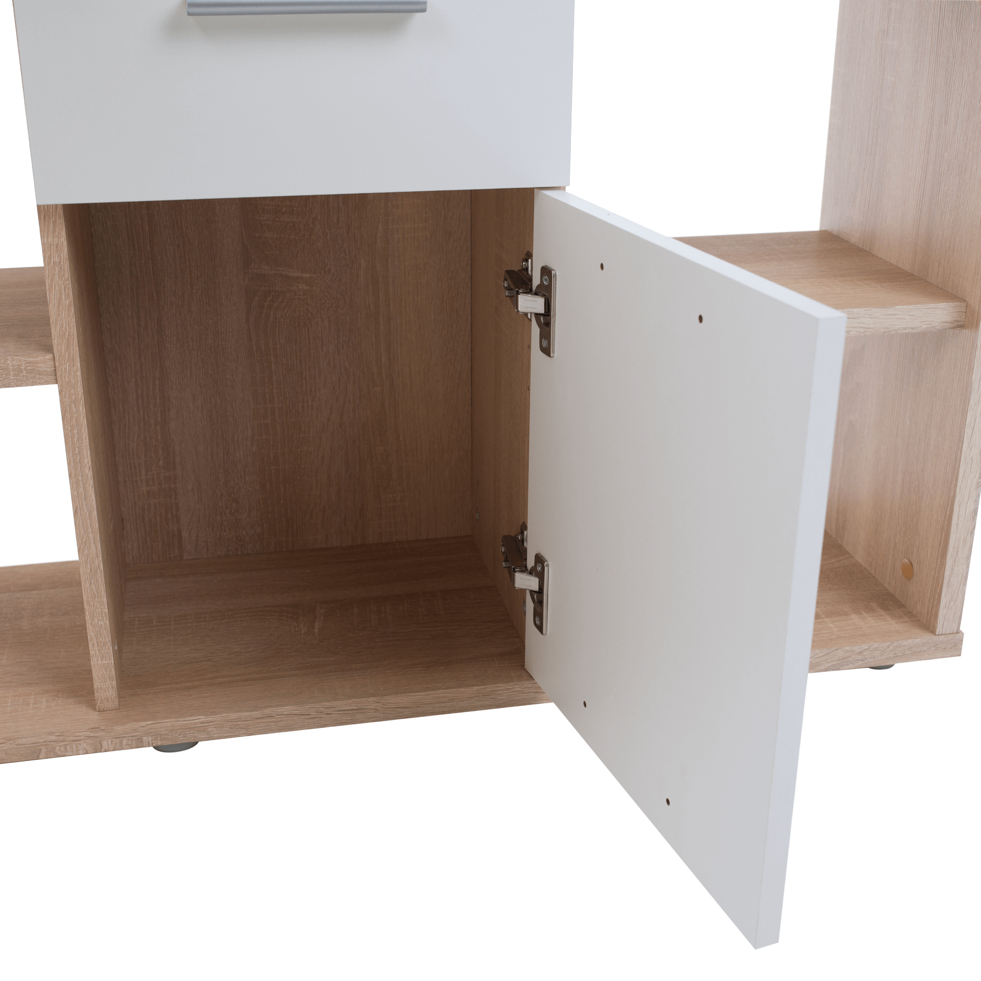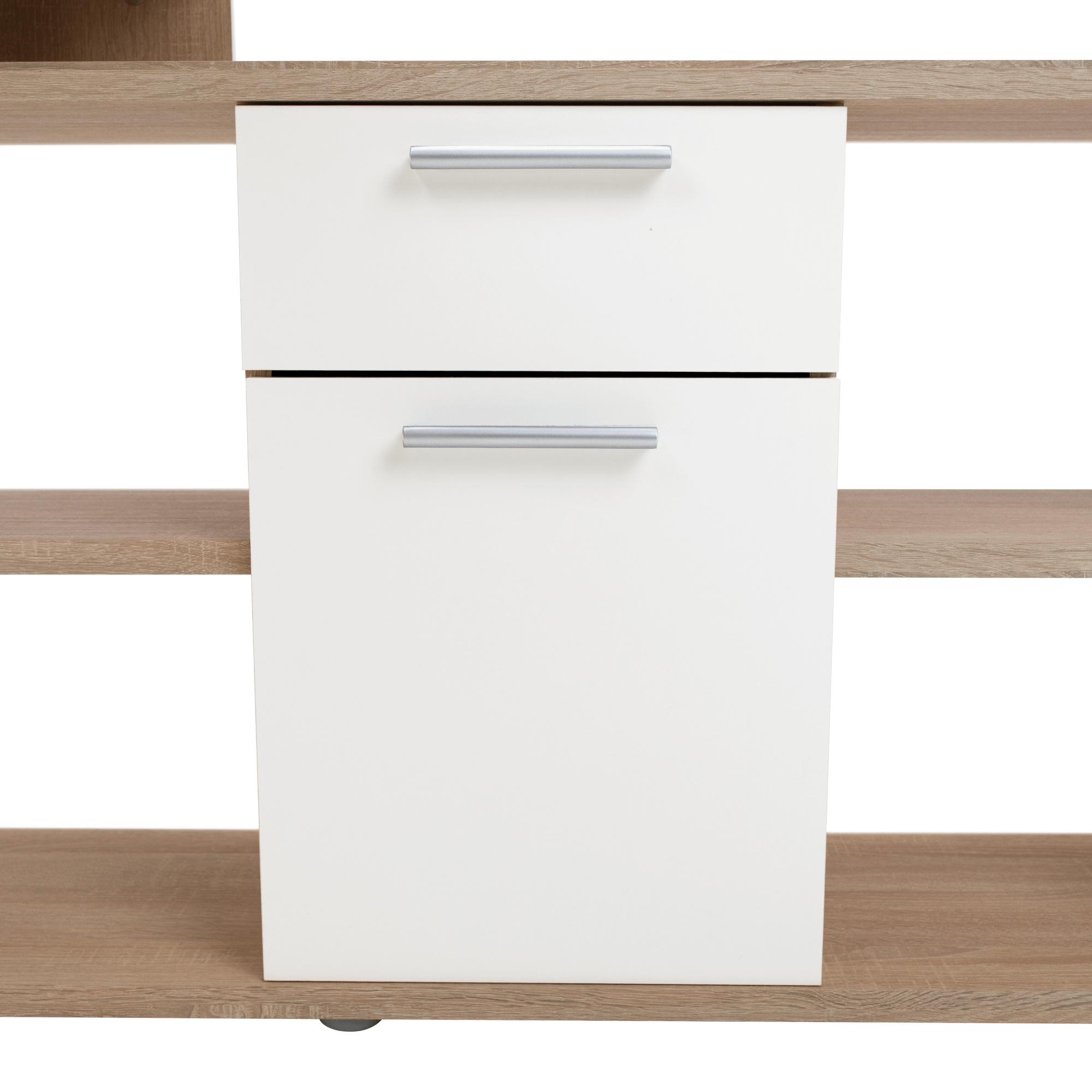 PC stůl rohový, materiál DTD fóliovaná. Provedení dub sonoma / bílá. Rozměry (ŠxVxH): 135x74x135 cm Tloušťka materiálu: 16/22 mm