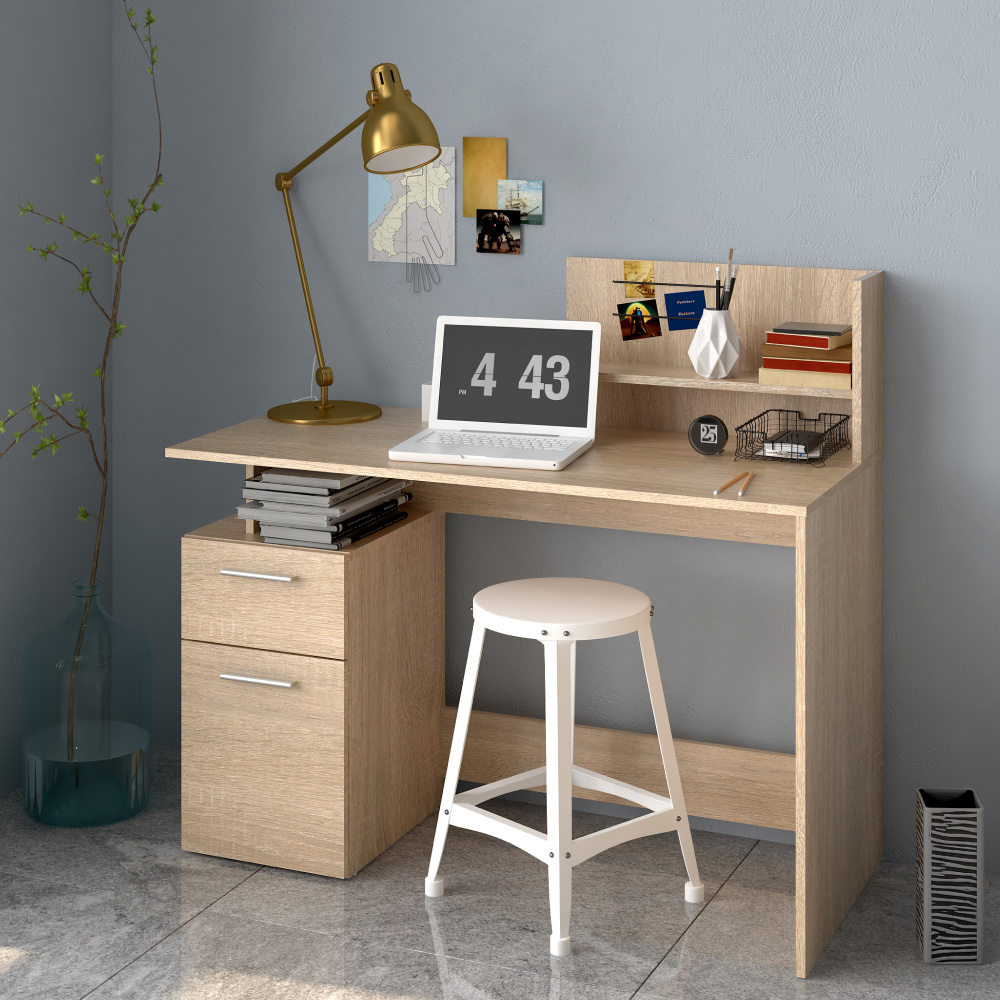 Materiál: laminovaná DTD Barva: dub sonoma Celkové rozměry (ŠxHxV):121,5x55x109,5 cm Nosnost desky stolu: 35 kg Rozměry kontejneru (ŠxHxV): 34,2x41,3x58 cm Výška šuplíku: 18,8 cm Tloušťka materiálu: 1,6 cm Otevřený úložný prostor S nástavcem S plastovou úchytkou Barva úchytky: stříbrná Obsahuje polici, šuplík a regál Kvalitní slovenský výrobek Nožičky v podobě kluzáků Dodáváno v demontu