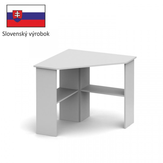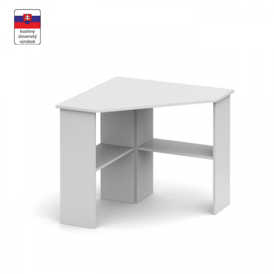 Rohový PC stůl, barevné provedení: bílá, materiál: DTD laminovaná, rozměry ŠxVxH: 84x74x84 cm. Tloušťka materiálu: 16 mm. Dodáváno v demontu.