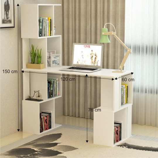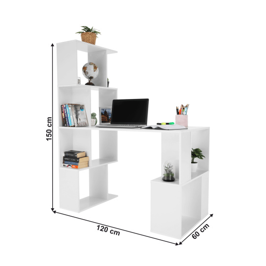Praktický PC stůl s regálem FLOKI NEW Materiál: DTD laminovaná Barva: bílá Rozměry (ŠxHxV): 120x60x150 cm Tloušťka materiálu: 15 mm Dodávané v demontu.