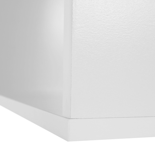 Rohový kancelářský regál JOHAN 2 NEW 09 se čtyřmi policemi Barevné provedení: bílá Materiál: DTD lamiovaná Rozměry (ŠxHxV): 62,7x62,7x186 cm Tloušťka materiálu: 16/22 mm slovenský výrobek ABS hrany Dodávané v demontu Hmotnost: 55.5kg