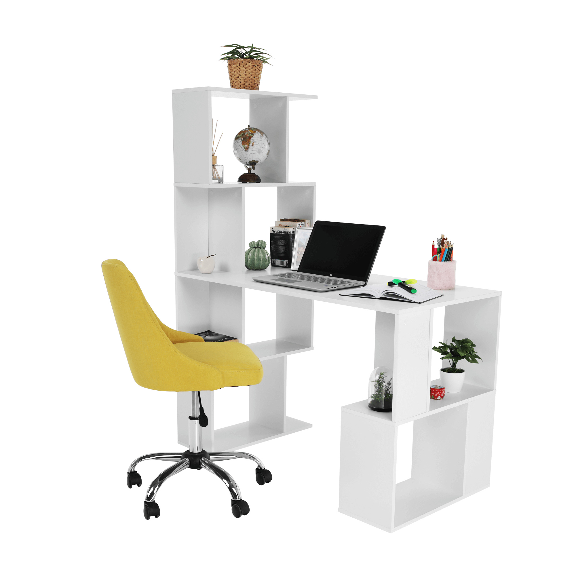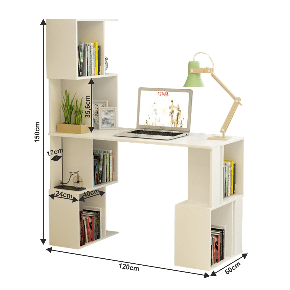 PC stůl s regálem, bílá, FLOKI NEW