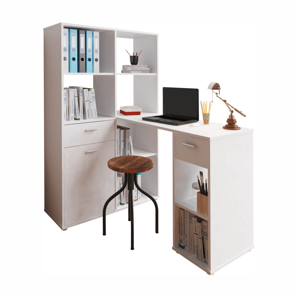 PC stůl s regálem, bílá, FLOKI NEW