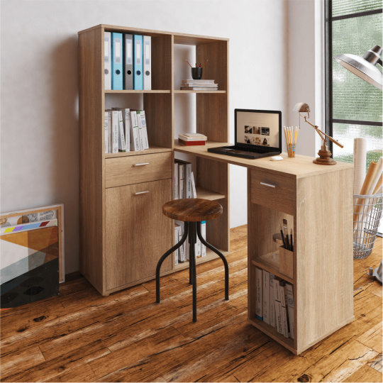 Materiál: DTD laminovaná Barva: dub sonoma Rozměry (ŠxHxV): 124x90x145 cm Tloušťka materiálu: 16 mm S regálem dva šuplíky skříňka Otevřený úložný prostor S úchytkami Kvalitní slovenský výrobek Dodávané v demontu