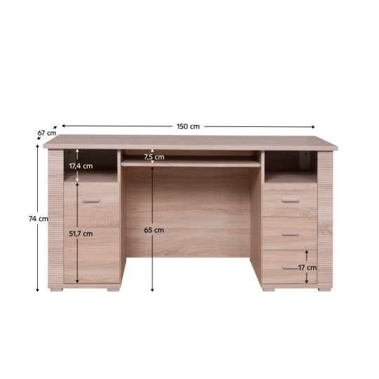 ;"PC stůl typ 22, vhodný na zařízení obývacích pokojů, ložnic i pracoven, materiál: DTD laminovaná. Hrany jednotlivých komponentů jsou ukončeny vroubkovanou lištou. Barevné provedení: dub sonoma. Rozměry (ŠxVxH): 155x76x67 cm. Tloušťka materiálu korpus: 16 mm Tloušťka materiálu vrchní desky: 22 mm Dodávána v demontu, pouze na objednávku s dodací lhůtou 3-5 týdnů.