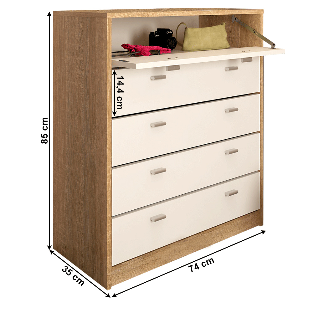 Materiál: DTD laminovaná Barva: dub sonoma / bílá Rozměry (ŠxHxV): 74x35x85 cm Tloušťka materiálu: 16 mm Výška dvířek: 14,4 cm Pět výklopné úložné prostory Kvalitní slovenský výrobek Dodávané v demontu