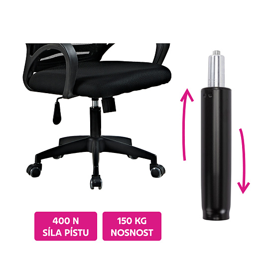 Materiál: kov Barva: černá Průměr pístu: 5 cm Průměr pístnice: 2,8 cm Celková délka pístu: 35 cm Délka těla pístu: 19,5 cm Prodloužení: 9,2 cm Síla pístu: 400 N Nosnost: Max. 150 kg Hmotnost: 0,7 kg Náhradní plynový píst Pro kancelářská křesla Pro kancelářské židle Pro otočné židle