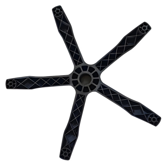 Materiál: nylonový plast Barva: černá/šedá 5-ramenná Délka ramene: 32 cm Průměr otvoru na píst: 5 cm Pro kolečka o průměru vřetena: 1,1 cm Výška: 9 cm Nosnost: 150 kg Pro kancelářská křesla Pro kancelářské židle